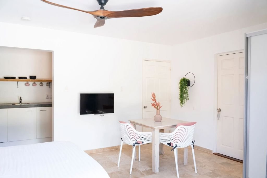 Winter Wanneer je tussen 20-12-2024 en 31-10-2025 in deze accommodatie verblijft, is onderstaande informatie van toepassing. * Ligging * Openbaar strand op circa 100 meter * Weg tussen het strand en de accommodatie * Centrum van Kralendijk op circa 5 kilometer * Dichtstbijzijnde winkel op circa 500 meter * Dichtstbijzijnde restaurant op circa 500 meter * Dichtstbijzijnde bar op circa 1 kilometer * Salt Pier op circa 5 kilometer * Sorobon op circa 8 kilometer * National Park op circa 26 kilometer * Algemeen & faciliteiten * 1 gebouw * Maximaal 2 verdiepingen * 6 appartementen * Receptie * Telefonisch bereikbaar (24 uur per dag) * Lift * Wifi in alle openbare ruimtes * Tuin * Privé parkeergelegenheid * Openbare parkeergelegenheid * Activiteiten & ontspanning * Spafaciliteiten * Massages tegen betaling * Beschikbaar bij Bamboo Bonaire * Zwembaden * Buitenzwembad * Zoutwater * Zonneterras * Ligbedden * Parasol * Verzorging * Logies * Goed om te weten * Werkzaamheden in de directe omgeving van deze accommodatie vinden alleen overdag plaats, eventuele overlast wordt zoveel mogelijk beperktHotelkamers * Studio Standaard SZ * Oppervlakte van circa 30 m² * Airconditioning * Televisie * Kitchenette * 2-pits kooktoestel * Koffie- en theefaciliteiten * Koelkast * Vaatwasmachine * Badkamer met douche en toilet * Wifi * Balkon of terras * 3-kamerappartement Standaard 3AZ * Oppervlakte van circa 70 m² * Woonkamer * 2 slaapkamers * Airconditioning * Televisie * Kitchenette * 4-pits kooktoestel * Koffie- en theefaciliteiten * Koelkast * Vaatwasmachine * Badkamer met douche en toilet * Wifi * Balkon of terras