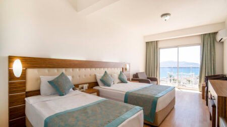 Zomer Wanneer je tussen 18-04-2025 en 16-11-2025 in deze accommodatie verblijft, is onderstaande informatie van toepassing. * Ligging * Privéstrand op circa 50 meter * Weg tussen het strand en de accommodatie * Centrum van Oba op circa 150 meter * Dichtstbijzijnde winkel op circa 200 meter * Dichtstbijzijnde restaurant op circa 200 meter * Dichtstbijzijnde bar op circa 200 meter * Alanya op circa 2,5 kilometer * Bushalte op circa 50 meter * Algemeen & faciliteiten * 1 gebouw * Maximaal 6 verdiepingen * 105 kamers * Receptie * 24 uur per dag * Lobby * 2 liften * Bagageruimte * Wifi in alle openbare ruimtes * Winkel (minimarkt) * Wasservice tegen betaling * Doktersservice tegen betaling * Privé parkeergelegenheid * Restaurants & bars * Buffetrestaurant * Snackbar * Roomservice tegen betaling * 3 drinkgelegenheden * 3 bars * Activiteiten & ontspanning * Beachvolleybal * Biljart tegen betaling * Darts * Fitness * Tafeltennis * Spafaciliteiten * Sauna tegen betaling * Hamam * Bubbelbad binnen tegen betaling * Massages tegen betaling * Schoonheidsbehandelingen tegen betaling * Livemuziek * 2 keer per week * Zwembaden * 2 buitenzwembaden * Eén van deze zwembaden heeft 2 glijbanen * Buitenzwembad voor kinderen * Zonneterras * Ligbedden met matrasjes * Parasol * Badhanddoekenservice gratis met borg * Kinderfaciliteiten * Babybedje op aanvraag via ons contact center * Verzorging * All Inclusive * Ontbijt in buffetvorm (07.00-10.00 uur) * Lunch in buffetvorm (12.30-14.00 uur) * Diner in buffetvorm (19.00-21.00 uur) * Snacks (11.00-17.00 uur) * Koffie, thee & koekjes (17.00-18.00 uur) * Middernachtsnack (23.30-00.00 uur) * Selectie lokale (non-)alcoholische drankjes (10.00-00.00 uur) * Tegen betaling: import drankjes, cocktails, turkse koffie en verse vruchtensappenHotelkamers * 2-persoonskamer Standaard DZ * Oppervlakte circa 18 m² * Airconditioning * Kluisje tegen betaling * Televisie * Satelliettelevisie * Telefoon tegen betaling * Eet- en drinkfaciliteiten * Minibar * Gevuld met water * Badkamer met bad of douche, toilet, föhn en badslippers * Wifi * Balkon (zitje) * 2-persoonskamer Large DL * Oppervlakte circa 25 m² * Eén grote kamer * Airconditioning * Kluisje tegen betaling * Satelliettelevisie * Telefoon tegen betaling * Eet- en drinkfaciliteiten * Minibar * Gevuld met water * Badkamer met bad of douche, toilet, föhn en badslippers * Wifi * Balkon (zitje)