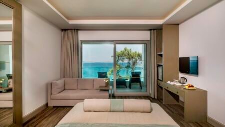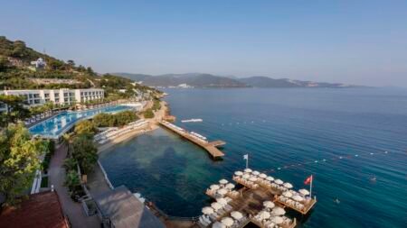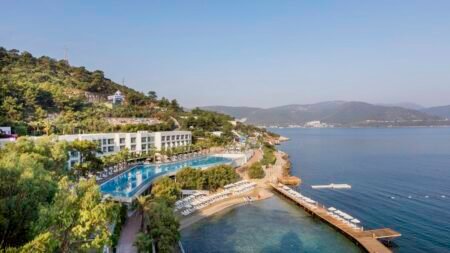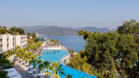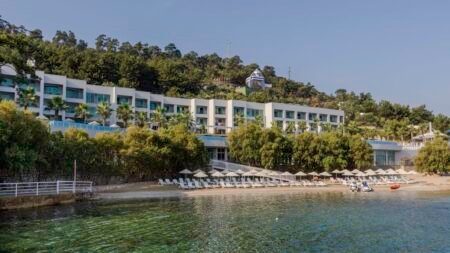 Zomer Wanneer je tussen 01-05-2025 en 30-10-2025 in deze accommodatie verblijft, is onderstaande informatie van toepassing. * Ligging * Gelegen op een heuvel * Gelegen aan het privéstrand * Zandstrand * Kiezelstrand * Ligbedden met matrasjes * Parasol * Dichtstbijzijnde winkel op circa 10 kilometer * Dichtstbijzijnde restaurant op circa 5 kilometer * Torba op circa 5 kilometer * Bodrum op circa 10 kilometer * Bushalte (op loopafstand) * Algemeen & faciliteiten * 3 gebouwen * Maximaal 3 verdiepingen * 350 kamers * Receptie * 24 uur per dag * 3 liften * Lift in elk gebouw * Bagageruimte * Wifi in alle openbare ruimtes * Meerdere winkels * Minimarkt * Wasservice tegen betaling * Doktersservice tegen betaling * op aanvraag * Privé parkeergelegenheid * Restaurants & bars * Buffetrestaurant * 3 à-la-carterestaurants * Italiaans restaurant tegen bijbetaling * Turks restaurant tegen bijbetaling * Visrestaurant Eén keer verblijf gratis dineren in dit óf een ander geselecteerd à-la-carterestaurant * 6 drinkgelegenheden * 6 bars * Activiteiten & ontspanning * Aerobics * Basketbal * Darts * Fitness * Tafeltennis * Watersporten tegen betaling * Yoga * Spa Center * Binnenzwembad * Sauna * Hamam * Massages tegen betaling * Schoonheidsbehandelingen tegen betaling * Animatie * 7 keer per week * Shows * 7 keer per week * Livemuziek * 2 keer per week * Zwembaden * 5 buitenzwembaden * Eén van deze zwembaden heeft 4 glijbanen * 2 buitenzwembaden voor kinderen * Zonneterras * Ligbedden met matrasjes * Parasol * Badhanddoekenservice * Kinderfaciliteiten * Mini club (4-12 jaar) * 6 keer per week * Minidisco * Buitenspeeltuin * Babybedje als preferentie toe te voegen in het boekingsformulier * Verzorging * Ultra All Inclusive * Ontbijt in buffetvorm (07.00-10.00 uur) * Laat ontbijt in buffetvorm (10.00-10.30 uur) * Lunch in buffetvorm (12.30-14.00 uur) * Diner in buffetvorm (19.00-21.30 uur) * Dineren in één van de à-la-carterestaurants 1 keer per verblijf bij een verblijf van minimaal 7 nachten * Snacks (12.00-17.00 uur) * Koffie, thee & koekjes (17.00-19.00 uur) * IJs (16.00-17.00 uur) * Middernachtsnack (00.00-02.00 uur) * Selectie geïmporteerde drankjes * Selectie lokale (non-)alcoholische drankjes (24 uur per dag) * Tegen betaling: dineren in enkele à-la-carterestaurants en energiedranken * Goed om te weten * Deze accommodatie is niet geschikt voor mensen die slecht ter been zijn * Deze accommodatie heeft veel hoogteverschillen * Duurzaamheidslabel(s): Green KeyHotelkamers * 2-persoonskamer Club DC * Oppervlakte van circa 20 m² * Tuinzicht * Airconditioning * Kluisje * Satelliettelevisie * Telefoon tegen betaling * Eet- en drinkfaciliteiten * Koffie- en theefaciliteiten * Minibar * Gevuld met water en frisdrank * Dagelijks aangevuld met water * Badkamer inloopdouche, toilet en föhn * Wifi * 2-persoonskamer Club Zeezicht DCM * Oppervlakte van circa 20 m² * Zeezicht * Airconditioning * Kluisje * Satelliettelevisie * Telefoon tegen betaling * Eet- en drinkfaciliteiten * Koffie- en theefaciliteiten * Minibar * Gevuld met water en frisdrank * Dagelijks aangevuld met water * Badkamer inloopdouche, toilet en föhn * Wifi * Balkon of terras * 2-persoonskamer Deluxe DD * Oppervlakte van circa 40 m² * Zeezicht * Airconditioning * Kluisje * Satelliettelevisie * Telefoon tegen betaling * Eet- en drinkfaciliteiten * Koffie- en theefaciliteiten * Minibar * Gevuld met water en frisdrank * Dagelijks aangevuld met water * Badkamer inloopdouche, toilet, föhn en badslippers * Wifi * Balkon * Familiekamer Club Landzicht FCL * Oppervlakte van circa 35 m² * Tuinzicht * 2 slaapkamers * Airconditioning * Kluisje * Satelliettelevisie * Telefoon tegen betaling * Eet- en drinkfaciliteiten * Koffie- en theefaciliteiten * Minibar * Gevuld met water en frisdrank * Dagelijks aangevuld met water * Badkamer inloopdouche, toilet en föhn * Wifi
