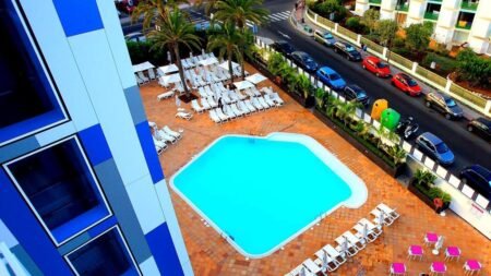 Geniet van een ontspannen en actieve vakantie met drie buitenzwembaden en een wellness spa. Ontspan in de zon en stilte, of blijf actief met sportactiviteiten zoals waterpolo, tennis en padel. Na inspanning of ontspanning kun je een drankje drinken in een van de bars. Het hotel ligt dicht bij het strand en het centrum, ideaal voor een bezoek aan bezienswaardigheden of attracties. Sluit de dag af met een cocktail in de rooftopbar en geniet van het uitzicht.