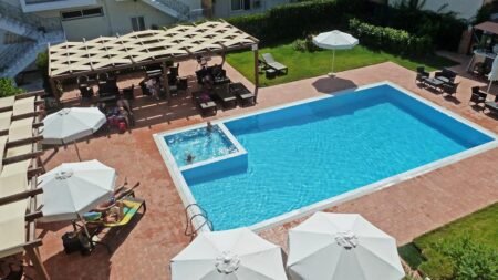 Luxe en kleinschalig boutique hotel, In een prachtige groene omgeving, Centrum Nikiana op loopafstand, Ontspannen doe je bij het zwembad, Geniet van een drankje aan de bar, Lopend naar de zee & inclusief transfers.