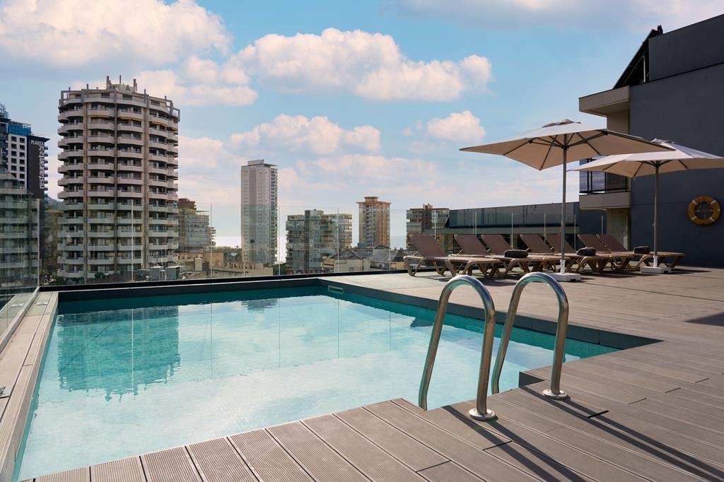 Toplocatie op Plaza Fleming, Paar minuten naar Levante-strand, Omringd door winkels en horeca, Ruime kamers met alle comfort, Zwembad voor verfrissing, Buffet met show-cooking & inclusief transfers.
