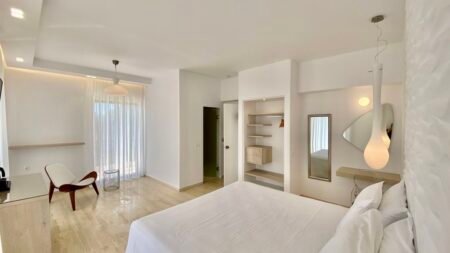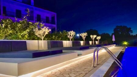 Op het betoverende eiland Corfu, te midden van het rustige landschap van Agios Georgios, bevindt zich het Bruskos Hotel. Gelegen tussen wijngaarden en olijfboomgaarden is dit kleinschalige hotel de perfecte plek voor degenen die het eiland willen verkennen of gewoon willen genieten van de zon. Één van de hoogtepunten van het Bruskos Hotel is het uitnodigende buitenzwembad. Rondom het zwembad staan ligstoelen en parasols, waardoor het een aangename plek is om een middag door te brengen met een goed boek of gewoon te genieten van de rustige omgeving. De echte charme van het Bruskos Hotel is echter de nabijheid van het strand. Op een korte wandeling van 250 meter bevindt je je al aan de rand van het zachte zand van Agios Georgios, waar het kalme zeewater uitnodigt voor een verkoelende duik. Samengevat is het Bruskos Hotel in Agios Georgios, ideaal voor degenen die een ongecompliceerde vakantie op Corfu wensen, met het strand en ontspanning binnen handbereik!