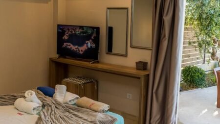 De stijlvolle bungalows en appartementen zijn trendy en luxe ingericht, lekker licht, ruim en met een moderne uitstraling. Je kunt kiezen tussen appartementen met privézwembad, een bungalow met privézwembad of een bungalow waarvan je het zwembad deelt met een andere bungalow. Zie je het al voor je? Een prachtige bungalow met eigen zwembad? Je stapt via de openslaande deuren het terras op en je neemt zo een frisse duik. Op je ligbedje kun je heel wat uurtjes relaxen in de heerlijke Griekse zon. Dat wordt genieten!