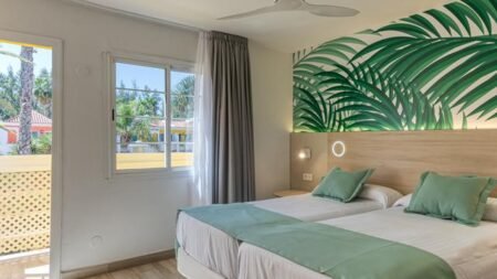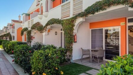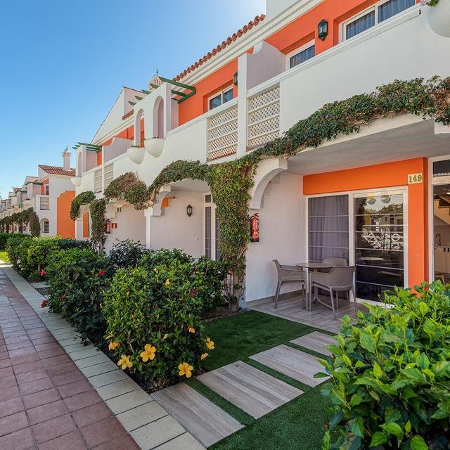 Tussen de wuivende palmbomen en fleurige bloemen en direct naast de golfbaan van Maspalomas vind je de kleurrijke Bungalows Cordial Green Golf. Het mooie zandstrand ligt op 1,5 kilometer afstand.