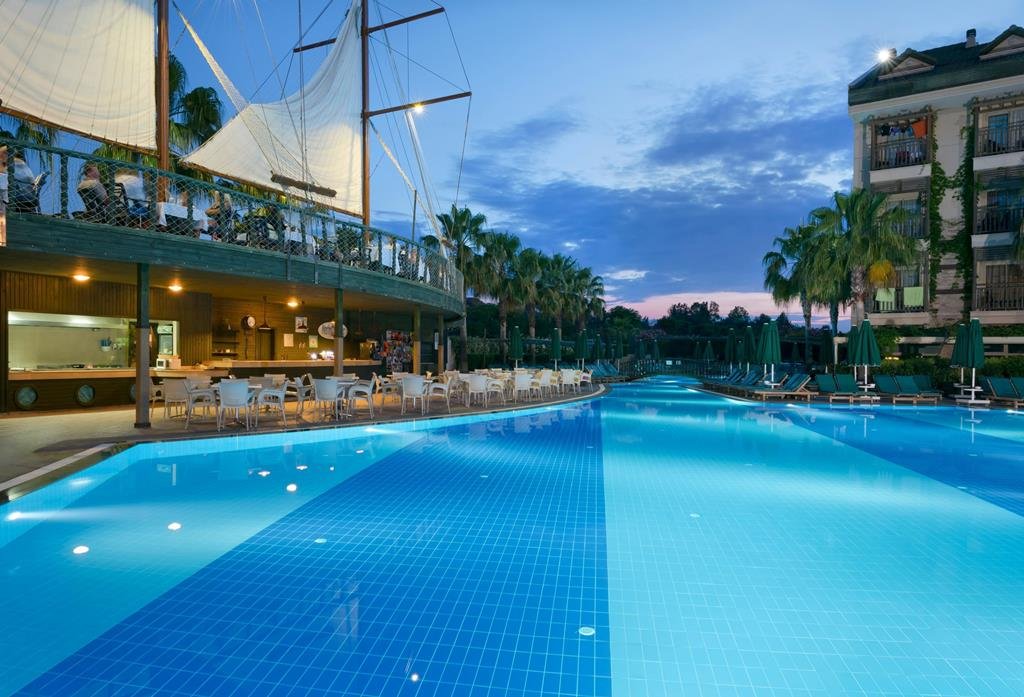 Tropisch resort met palmbomen, Het strand op 600 meter, Restaurant vormgegeven als schip, Avondshows en livemuziek, Een dagje uit naar Side? Check!, Buffet en à-la-carte in één & inclusief transfers.