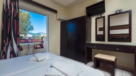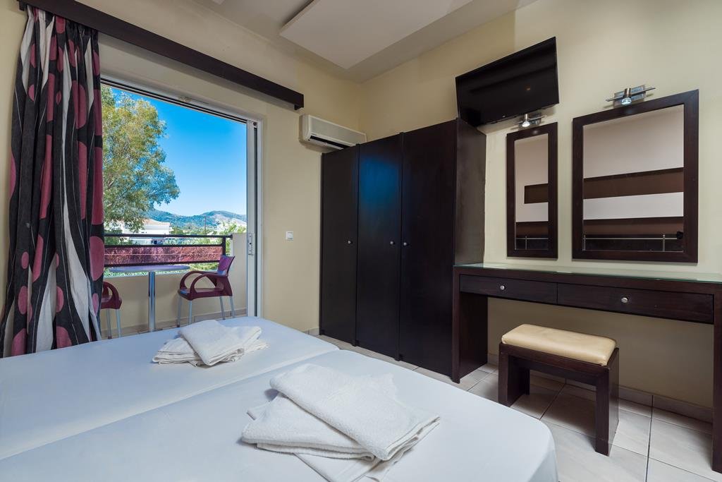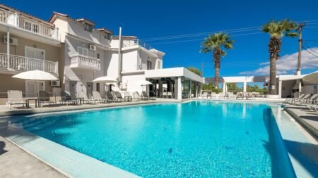Op zoek naar een vakantie met de perfecte mix van rust én actie? Dit aparthotel in Laganas, Zakynthos, heeft het allemaal. Op slechts 200 meter van het brede zandstrand en vlakbij het bruisende winkel en uitgaansleven. Duik in het zwembad, relax in de zon of verken de omgeving. Of je nu met het gezin komt of een romantisch uitje hebt, hier is voor ieder wat wils. Sluit de dag af met een lekkere cocktail in de bar. Klaar voor de vakantie van je leven in Griekenland?