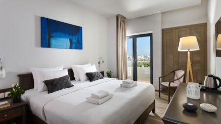 Castello City Hotel is een verzorgd stadshotel waar comfort, service en een fijne sfeer samenkomen. Je verblijft hier in een modern hotel met oog voor detail en persoonlijke aandacht. De warme, Kretenzische gastvrijheid zorgt ervoor dat je je snel thuis voelt. Een bijzonder pluspunt is het restaurant en de bar op de vijfde verdieping, waar je in alle rust geniet van een mooi uitzicht over de stad en de zee. Het hotel ligt op een handige locatie in Heraklion, op loopafstand van winkels en op korte afstand van het centrum. Het openbare strand ligt op ongeveer een kilometer en ook bekende bezienswaardigheden zoals het paleis van Knossos en de Venetiaanse vestingwerken zijn eenvoudig te bereiken. Dankzij de centrale ligging is Castello City Hotel een ideale uitvalsbasis om Heraklion en de rest van Kreta te ontdekken.