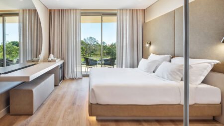 Castelo Suites Hotel is een stijlvol hotel in een rustige omgeving, op slechts 6 kilometer van het levendige Albufeira. Met een gratis shuttleservice ben je zo op het strand, dat op 900 meter afstand ligt. Het hotel beschikt over twee fijne buitenzwembaden, waaronder een sfeervol rooftopzwembad voor gasten van 16 jaar en ouder. Daarnaast zijn er drie bars, een restaurant, een fitnessruimte en een uitgebreid Spa Center waar je heerlijk kunt ontspannen. De omgeving van Castelo Suites Hotel biedt een mooie mix van rust en gezelligheid. Je kunt genieten van de prachtige stranden, de karakteristieke rotskusten en de vele baaien die de Algarve zo geliefd maken. Ook een bezoek aan het oude centrum van Albufeira met zijn nauwe straatjes, restaurants en leuke winkeltjes is zeker de moeite waard. Of je nu kiest voor ontspanning of juist voor verkenning, Castelo Suites Hotel vormt een heerlijke uitvalsbasis voor jouw vakantie in Portugal!