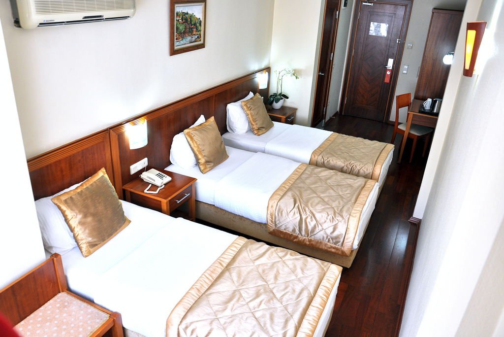 Direct naar: * Ligging () * Faciliteiten () * Restaurants & bars () * Zwembaden () * Hotelkamers () * Activiteiten & ontspanning () * Verzorging () * Ligging Centrum Hotel * Het centrum van Eminönü op ca. 500 meter * Dichtsbijzijnde winkeltjes, restaurants en bars op ca. 20 meter * Bushalte op ca. 500 meter Faciliteiten * 1 gebouw met maximaal 11 verdiepingen * 2 liften * 48 kamers * 24-uursreceptie * Lobby * Bagageruimte * Wifi * Roomservice* * Wasservice* * Openbare parkeergelegenheid* *Tegen betaling Restaurants & bars * 1 buffetrestaurant * 1 bar Hotelkamers * Standaardkamer (1-3 personen) * Ca. 17 m² * Telefoon* * Airconditioning * Televisie * Minibar* * Kluisje * Wifi * Douche * Toilet * Föhn * Slippers *Tegen betaling Activiteiten & ontspanning * Turks bad * Sauna * Massages* *Tegen betaling Verzorging Zomer: Centrum Hotel * Verblijf o.b.v. Logies & Ontbijt: ontbijt in buffetvorm