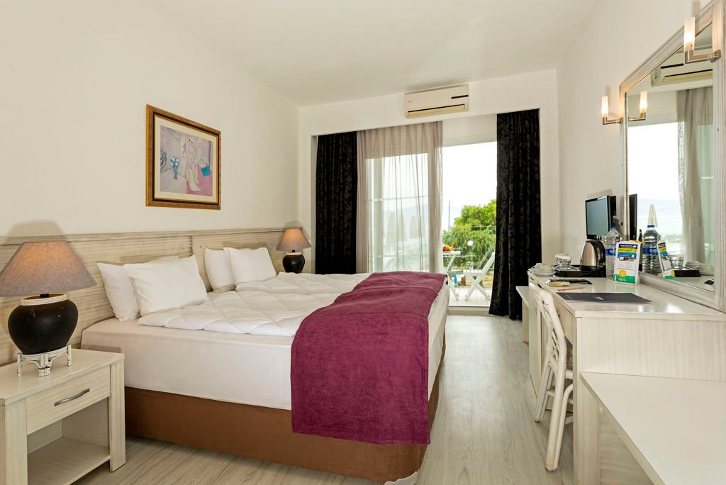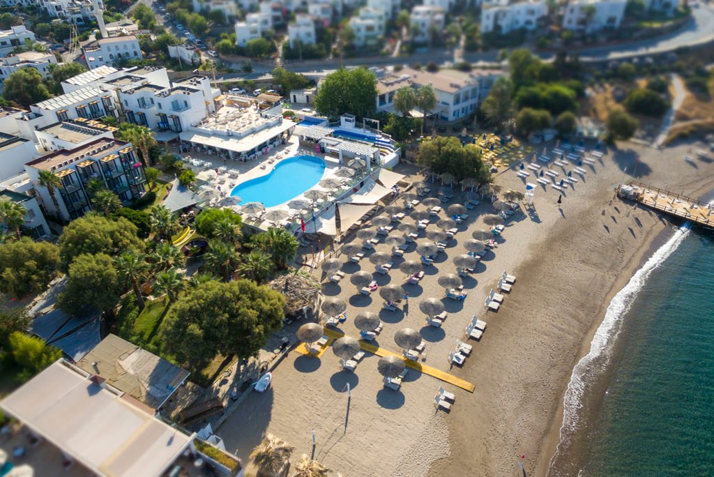 Direct naar: * Ligging () * Faciliteiten () * Restaurants & bars () * Zwembaden () * Hotelkamers () * Activiteiten & ontspanning () * Kinderfaciliteiten () * Verzorging () Ligging Charm Beach * Direct aan het privéstrand * Op ca. 6 kilometer van Turgutreis * Dichtstbijzijnde winkel op ca. 100 meter * Dichtstbijzijnde restaurant op ca. 200 meter * Bushalte voor het hotel * Centrum van Bodrum op ca. 25 kilometer Faciliteiten * 1 gebouw met maximaal 3 verdiepingen * 1 lift * 104 kamers * 24-uursreceptie * Lobby * Bagageruimte * Tuin * Wifi * Roomservice* * Winkeltje en minimarkt* * Wasservice* * Doktersservice* * Kapsalon* * Openbare parkeergelegenheid *Tegen betaling Restaurants & bars * 1 buffetrestaurant * 2 à-la-carterestaurants (vooraf reserveren, zie ook verzorging) * 1 snackrestaurant * Patisserie * 3 bars Zwembaden * 1 buitenzwembad * Zonneterras * Privéstrand * Ligbedden en parasols gratis (zwembad en strand) Hotelkamers * Standaardkamer landzicht (1-3 personen) * Ca. 18-21 m² * Telefoon* * Airconditioning * Televisie * Minibar * Kluisje * Koffie-/theezetfaciliteiten * Wifi * Douche * Toilet * Föhn * Slippers * Balkon of terras met zitje * Tegen een meerprijs boekbaar met zeezicht *Tegen betaling * Familiekamer (3-4 personen) * Ca. 32 m² * Bestaat uit 2 ruimtes * Dezelfde faciliteiten als de Standaardkamer landzicht Activiteiten & ontspanning * Fitness * Beachvolleybal * Darts * Biljart * Watersporten aan het strand* * Turks bad * Sauna * Massages* * 1x per week een show * 1x per week live muziek *Tegen betaling Kinderfaciliteiten * 1 kinderzwembad * Miniclub (4-12 jaar) * Speeltuin * Babybedjes (op aanvraag en op basis van beschikbaarheid) * Babysitservice op aanvraag en tegen betaling Verzorging Zomer: Charm Beach * Verblijf o.b.v. All Inclusive: * Ontbijt in buffetvorm (07.00-10.00 uur) * Lunch in buffetvorm (13.00-14.30 uur) * Diner in buffetvorm (19.30-21.30 uur) * Diverse snacks (12.30-17.00 uur) * Koffie/thee en koekjes (10.00-18.00 uur) * IJs (13.00-14.30 uur) * Tijdens je verblijf mag je 1x à-la-carte dineren (vooraf reserveren) * Geselecteerde lokale (non-)alcoholische dranken en een selectie import dranken (10.00-23.00 uur) * Tegen betaling: import drankjes, roomservice en drankjes in de à-la-carterestaurants (vooraf reserveren)