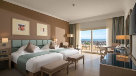 Winter Wanneer je tussen 01-11-2025 en 31-03-2026 in deze accommodatie verblijft, is onderstaande informatie van toepassing. * Ligging * Gelegen aan het privéstrand * Zandstrand * Ligbedden * Parasol * Centrum van Hurghada op circa 30 kilometer * Shuttleservice naar het centrum (Hurghada) tegen betaling * Shuttleservice naar het winkelcentrum (Senzo Mall) tegen betaling * Algemeen & faciliteiten * Adults Only (minimumleeftijd 18 jaar) * 1 gebouw * Maximaal 3 verdiepingen * 80 kamers * Receptie * 24 uur per dag * Lobby * Meerdere liften * Niet in elk gebouw een lift * Bagageruimte * Wifi in diverse openbare ruimtes * 12 winkels * Minimarkt * Wasservice tegen betaling * Doktersservice tegen betaling * Tuin * Privé parkeergelegenheid * Restaurants & bars * À-la-carterestaurant * Italiaans restaurant * Roomservice tegen betaling * 2 drinkgelegenheden * Activiteiten & ontspanning * Aerobics * Basketbal * Biljart * Boccia * Boogschieten tegen betaling * Darts * Duikcentrum tegen betaling * Fitness * Tafeltennis * Tennis * Voetbal * Volleybal * Spafaciliteiten * Hamam tegen betaling * Bubbelbad binnen tegen betaling * Massages tegen betaling * Schoonheidsbehandelingen tegen betaling * Animatie voor volwassenen * Meerdere keren per week * Shows voor volwassenen * Meerdere keren per week * Livemuziek * Meerdere keren per week * Zwembaden * Buitenzwembad * Verwarmd tussen ca. november en maart * Bubbelbad buiten * Zonneterras * Ligbedden * Parasol * Badhanddoekenservice * Verzorging * All Inclusive * Ontbijt in buffetvorm (07.00-10.00 uur) * Laat ontbijt in buffetvorm (10.30-11.30 uur) * Lunch in buffetvorm (12.30-14.30 uur) * Diner in buffetvorm (18.30-21.30 uur) * Snacks (12.30-16.00 uur) * Koffie, thee & koekjes (16.00-17.00 uur) * IJs (12.30-17.00 uur) * Selectie lokale (non-)alcoholische drankjes (24 uur per dag) * Tegen betaling: alle consumpties in de discotheek, import drankjes en roomserviceHotelkamers * 2-persoonskamer (Deluxe Front) D2 * Oppervlakte circa 35 m² * Zeezicht * Zeezijde * Airconditioning * Kluisje gratis * Satelliettelevisie gratis * Telefoon tegen betaling * Eet- en drinkfaciliteiten * Koffie- en theefaciliteiten gratis * Minibar * Badkamer met bad of douche, toilet en föhn * Wifi gratis * Balkon of terras (zitje) * 2-persoonskamer Premium Zeezicht DRM * Oppervlakte circa 35 m² * Zeezicht * Airconditioning in de woonkamer * Kluisje gratis * Satelliettelevisie gratis * Telefoon tegen betaling * Eet- en drinkfaciliteiten * Koffie- en theefaciliteiten gratis * Minibar * Badkamer met bad of douche, toilet en föhn * Wifi gratis * Balkon of terras (zitje) * 2-persoonskamer Premium Tuin- & zwembadzicht DRS * Oppervlakte circa 35 m² * Airconditioning * Kluisje gratis * Satelliettelevisie gratis * Telefoon tegen betaling * Eet- en drinkfaciliteiten * Koffie- en theefaciliteiten gratis * Minibar * Badkamer met bad of douche, toilet en föhn * Wifi gratis * Balkon of terras (zitje)