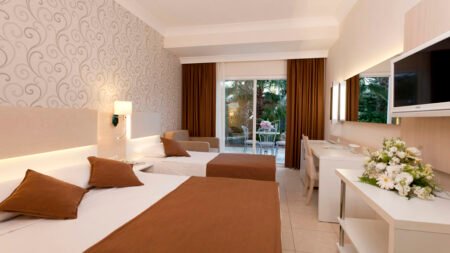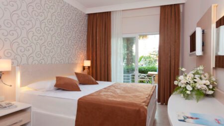 Zomer Wanneer je tussen 12-04-2025 en 19-11-2025 in deze accommodatie verblijft, is onderstaande informatie van toepassing. * Ligging * Privéstrand * Ligbedden met matrasjes * Parasol * Openbaar strand op circa 600 meter * Dichtstbijzijnde winkel op circa 500 meter * Dichtstbijzijnde restaurant op circa 500 meter * Dichtstbijzijnde bar op circa 500 meter * Avsallar op circa 3 kilometer * Alanya op circa 20 kilometer * Shuttleservice naar het strand * Bushalte op circa 500 meter * Algemeen & faciliteiten * 6 gebouwen * Maximaal 5 verdiepingen * 212 kamers * Receptie * 24 uur per dag * Lobby * 2 liften * Niet in elk gebouw een lift * Bagageruimte * Wifi in alle openbare ruimtes tegen betaling * 3 winkels * Minimarkt * Wasservice tegen betaling * Doktersservice tegen betaling * Tuin * Openbare parkeergelegenheid * Restaurants & bars * Buffetrestaurant * 4 drinkgelegenheden * 4 bars * Activiteiten & ontspanning * Aerobics * Biljart tegen betaling * Darts * Tafeltennis * Watersporten tegen betaling * Spafaciliteiten * Sauna * Hamam * Massages tegen betaling * Schoonheidsbehandelingen tegen betaling * Animatie voor volwassenen * 6 keer per week * Zwembaden * 3 buitenzwembaden * Eén van deze zwembaden heeft meerdere glijbanen * 2 buitenzwembaden voor kinderen * 2 van deze zwembaden zijn zoetwaterbaden * Eén van deze zwembaden heeft 3 glijbanen * Binnenzwembad * Zoetwater * Zonneterras * Ligbedden met matrasjes * Parasol * Badhanddoekenservice tegen betaling en met borg * Kinderfaciliteiten * Mini club * 6 keer per week * Minidisco * 6 keer per week * Buitenspeeltuin * Babybedje op aanvraag via ons contact center * Verzorging * All Inclusive * Ontbijt in buffetvorm (08.00-10.00 uur) * Lunch in buffetvorm (12.30-14.00 uur) * Diner in buffetvorm (18.30-20.30 uur) * Snacks (11.30-14.30 uur) * Gebakjes (16.00-17.00 uur) * IJs (15.00-16.00 uur) * Middernachtsnack (23.00-00.00 uur) * Selectie lokale (non-)alcoholische drankjes (10.00-23.00 uur) * Tegen betaling: import drankjes, cocktails, Speciale koffies, turkse koffie en verse vruchtensappen * Goed om te weten * Huisdieren zijn niet toegestaanHotelkamers * 2-persoonskamer Standaard DZ * Oppervlakte circa 28 m² * Airconditioning * Kluisje tegen betaling * Televisie * Telefoon tegen betaling * Eet- en drinkfaciliteiten * Minibar * Bij aankomst gevuld * Badkamer met douche, toilet en föhn * Wifi tegen betaling * Balkon of terras (zitje) * Familiekamer Standaard FZ * Oppervlakte van circa 50 m² * Airconditioning * Kluisje tegen betaling * Televisie * Telefoon tegen betaling * Eet- en drinkfaciliteiten * Koffie- en theefaciliteiten * Minibar * Bij aankomst gevuld * Badkamer met douche, toilet en föhn * Wifi tegen betaling * Balkon of terras (zitje) * Familiekamer Standaard FZ2 * Oppervlakte van circa 50 m² * Airconditioning * Kluisje tegen betaling * Televisie * Telefoon tegen betaling * Eet- en drinkfaciliteiten * Koffie- en theefaciliteiten * Minibar * Bij aankomst gevuld * Badkamer met douche, toilet en föhn * Wifi tegen betaling * Balkon of terras (zitje) * Familiekamer Duplex FF * Oppervlakte van circa 110 m² * Op één van de middelste verdiepingen * In duplexstijl * Woonkamer * 2 slaapkamers * Airconditioning * Kluisje tegen betaling * Televisie * Telefoon tegen betaling * Eet- en drinkfaciliteiten * Koffie- en theefaciliteiten * Minibar * Bij aankomst gevuld * 2 badkamers * Wifi tegen betaling * Balkon * Terras (ligstoelen) * Familiekamer Duplex FF1 * Oppervlakte van circa 110 m² * Op één van de middelste verdiepingen * In duplexstijl * Woonkamer * 2 slaapkamers * Airconditioning * Kluisje tegen betaling * Televisie * Telefoon tegen betaling * Eet- en drinkfaciliteiten * Koffie- en theefaciliteiten * Minibar * Bij aankomst gevuld * 2 badkamers * Wifi tegen betaling * Balkon * Terras (ligstoelen) * Familiekamer Duplex FF3 * Oppervlakte van circa 110 m² * Op één van de middelste verdiepingen * In duplexstijl * Woonkamer * 2 slaapkamers * Airconditioning * Kluisje tegen betaling * Televisie * Telefoon tegen betaling * Eet- en drinkfaciliteiten * Koffie- en theefaciliteiten * Minibar * Bij aankomst gevuld * 2 badkamers * Wifi tegen betaling * Balkon * Terras (ligstoelen)