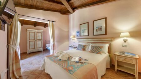 Wat is het heerlijk vertoeven. Of je hier nu met je gezin of samen bent, in de luxe kamers vindt je alle faciliteiten die je nodig hebt. Wanneer je de gordijnen open doet is het groene landschap met glooiende heuvels het eerste wat je ziet. Er zijn er maar liefst twee zwembaden. Je ligt lekker ontspannen op een ligbed, terwijl je kids de hele dag genieten in het water. Met gemak loop je naar de jachthaven of naar de stranden van Cala Granu en Cala Corallina. En gelukkig hoef je niet ver te zoeken voor een goed restaurant, want in het hotel proef je lokale en internationale specialiteiten.