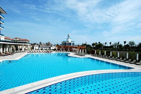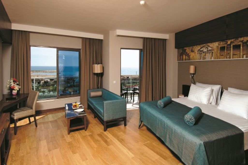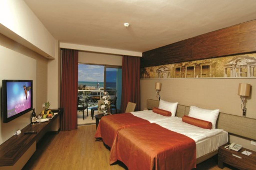 Ligging: Commodore Elite Suites & Spa ligt direct aan het privé zandstrand. Het centrum van Çolakli ligt op ongeveer 500 meter. Het oude centrum van Side ligt op circa 8 kilometer en het centrum van Manavgat op ongeveer 10 kilometer. Het openbaar vervoer treft u op korte afstand van het hotel aan. Faciliteiten: Commodore Elite Suites & Spa is een Adult Only hotel, de minimale leeftijd van de gasten is 18 jaar. Het hotel beschikt over 295 kamers verdeeld over één gebouw met twee zijvleugels en 7 verdiepingen. In de lobby met zitjes treft u de receptie en liften. Er is een buffetrestaurant en er zijn 2 à la carte restaurants (Ottomaans en Mediterraans, vooraf reserveren). Drankjes zijn te verkrijgen bij de diverse bars, waaronder de Piano bar en de Romance Night Club. In de tuin vindt u 3 zwembaden waarvan één met glijbanen. Rondom de zwembaden en op het strand kunt u gratis gebruikmaken van de ligbedden, parasols en badhanddoeken. Verder biedt Commodore Elite Suites & Spa u diverse winkels, een doktersservice, roomservice en een wasserette (allen tegen betaling). In de openbare ruimtes kunt u gratis gebruikmaken van wifi. Uw hotelkamer: De standaardkamers (32-36 m2) in Commodore Elite Suites & Spa zijn modern en comfortabel ingericht en beschikken over airconditioning, LCD satelliet televisie, minibar, kluisje (gratis), koffie- en theezetfaciliteiten, gratis wifi en een balkon of terras met zitje. De badkamer is voorzien van een douche, toilet en föhn. Tegen een toeslag kunt u een standaardkamer met zijzeezicht, zeezicht of zwembadzicht boeken. U kunt ook kiezen voor een Suite (44 m2) deze kamer is ruimer en luxer dan de standaardkamer en heeft zeezicht. Tevens zijn er Deluxe kamers (55 m2), deze zijn ruimer dan de Suite kamers en hebben zeezicht. Sport & Ontspanning: U kunt tijdens uw verblijf in Commodore Elite Suites & Spa gebruikmaken van tafeltennis, darts, boccia, beachvolley, fitness, yoga, aerobics en steps. Minigolf en watersporten aan het strand zijn tegen betaling. In het Spa Center kunt u gratis gebruikmaken van de sauna, het Turks bad, het binnenzwembad, de bubbelbad en het stoombad. Massages en behandelingen zijn tegen betaling. Het animatieteam verzorgt een leuk en gevarieerd dag- en avondprogramma. Verzorging Zomer: U verblijft in Commodore Elite Suites & Spa op basis van Ultra All Inclusive: ontbijt (07.00-10.00), laat ontbijt (gratis jus d’orange 10.00-11.00), lunch (12.30-14.30) en diner (19.00-21.30), allen in buffetvorm. Snacks (12.00-16.00 en 16.00-07.00) en patisserie (15.00-18.00). Tijdens uw verblijf kunt u één maal dineren in de à la carte restaurants (vooraf reserveren). Alle door het hotel geselecteerde lokale alcoholische en alcoholvrije drankjes 24 uur per dag. Tegen betaling: roomservice, verse vruchtensappen, import drankjes, speciale wijnen, champagne en cocktails. Verzorging Winter: U verblijft in Commodore Elite Suites & Spa op basis van Ultra All Inclusive: ontbijt (07.00-10.00), laat ontbijt (gratis jus d’orange 10.00-11.00), lunch (12.30-14.30) en diner (18.30-21.00), allen in buffetvorm. Snacks (16.00-07.00) en patisserie. Tijdens uw verblijf kunt u één maal dineren in de à la carte restaurants (4 dagen per week geopend en vooraf reserveren). Alle door het hotel geselecteerde lokale alcoholische en alcoholvrije drankjes 24 uur per dag. Tegen betaling: roomservice, verse vruchtensappen, import drankjes, speciale wijnen, champagne en cocktails. LET OP: In het voor/naseizoen en eventueel tijdens de winter periode (1 november t/m +/- 31 maart) kan het voorkomen dat bepaalde faciliteiten niet beschikbaar zijn i.v.m. onderhoud, bezetting of weersomstandigheden. Zo zijn veelal de buitenfaciliteiten niet beschikbaar, de buitenzwembaden buiten gebruik en geen of beperkte animatie aanwezig. Ook kan het voorkomen dat een accommodatieverschaffer vergoeding kan vragen voor bepaalde faciliteiten of diensten en dat de verzorging iets beperkter kan zijn. Het kan voorkomen dat een deel van het accommodatie complex tijdelijk niet in gebruik is vanwege onderhoud of lage bezetting.