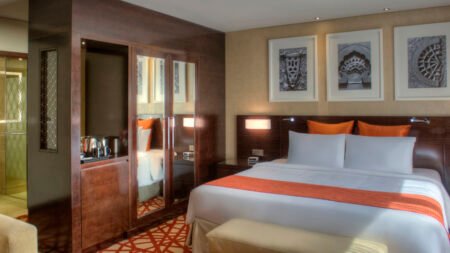 Winter Wanneer je tussen 01-11-2025 en 31-03-2026 in deze accommodatie verblijft, is onderstaande informatie van toepassing. * Ligging * Aan de rand van het centrum van Deira * Winkelcentrum Dubai Mall op circa 12 kilometer * Winkelcentrum Al Ghurair Mall op circa 900 meter * Openbaar strand Kite Beach op circa 19 kilometer * Zandstrand * Centrum van Deira City Centrum op circa 3,8 kilometer * Dichtstbijzijnde winkel op circa 100 meter * Shuttleservice naar het centrum (Oude centrum Deira) * Metrostation op circa 500 meter * Bushalte op circa 100 meter * Luchthaven * Luchthaven van Dubai (Dubai International Airport) op circa 5 kilometer * Algemeen & faciliteiten * 1 gebouw * Maximaal 6 verdiepingen * 300 kamers * Receptie * 24 uur per dag * – * Lobby * 8 liften * Bagageruimte * Wifi in alle openbare ruimtes gratis * Wasservice tegen betaling * Doktersservice tegen betaling * op aanvraag * Privé parkeergelegenheid * Restaurants & bars * Buffetrestaurant * À-la-carterestaurant (vooraf reserveren) * Italiaans restaurant * Snackbar * Roomservice tegen betaling * 2 drinkgelegenheden * Bar * Poolbar * Activiteiten & ontspanning * Fitness * Spafaciliteiten * Sauna * Bubbelbad binnen * Massages tegen betaling * Schoonheidsbehandelingen tegen betaling * Livemuziek- * Zwembaden * Buitenzwembad * Verwarmd * Buitenzwembad voor kinderen * Verwarmd * Zonneterras * Ligbedden gratis * Parasol gratis * Badhanddoekenservice gratis * Kinderfaciliteiten * Babybedje op aanvraag via ons contact center gratis * Babysitservice tegen betaling * ter plaatse op aanvraag * Verzorging * Logies & Ontbijt * Ontbijt in buffetvorm * Halfpension * Ontbijt in buffetvorm * Diner in buffetvorm * Volpension * Ontbijt in buffetvorm * Lunch in buffetvorm * Diner in buffetvormHotelkamers * 2-persoonskamer Club DC * Oppervlakte circa 32 m² * Kluisje * Televisie * Telefoon tegen betaling * Eet- en drinkfaciliteiten * Koffie- en theefaciliteiten * Minibar * Badkamer met bad en douche, toilet, föhn, badjassen en badslippers * Wifi * 2-persoonskamer Deluxe DD * Oppervlakte circa 32 m² * Airconditioning * Kluisje * Televisie * Telefoon tegen betaling * Eet- en drinkfaciliteiten * Koffie- en theefaciliteiten * Minibar * Badkamer met bad en douche, toilet, föhn, badjassen en badslippers * Wifi * Junior suite Standaard JZ * Oppervlakte circa 40 m² * Airconditioning * Kluisje * Televisie * Telefoon tegen betaling * Eet- en drinkfaciliteiten * Koffie- en theefaciliteiten * Minibar * Badkamer met bad en douche, toilet, föhn, badjassen en badslippers * Wifi