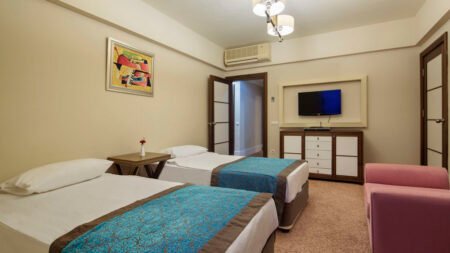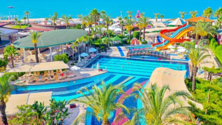 Zomer Wanneer je tussen 01-04-2025 en 16-11-2025 in deze accommodatie verblijft, is onderstaande informatie van toepassing. * Ligging * Gelegen aan het privéstrand (Bogazkent) * Ligbedden met matrasjes gratis * Parasol gratis * Dichtstbijzijnde winkel op circa 200 meter * Dichtstbijzijnde restaurant op circa 200 meter * Dichtstbijzijnde bar op circa 200 meter * Bogazkent op circa 200 meter * Belek op circa 7 kilometer * Bushalte op circa 200 meter * Algemeen & faciliteiten * 4 gebouwen * Maximaal 5 verdiepingen * 380 kamers * Receptie * 24 uur per dag * Inchecken vanaf 14.00 uur * Uitchecken tot 12.00 uur * Laat uitchecken tegen betaling * Lobby * 4 liften * Lift in elk gebouw * Bagageruimte * Wifi in één van de openbare ruimtes * Meerdere winkels * Minimarkt * Wasservice tegen betaling * Doktersservice tegen betaling * Tuin * Openbare parkeergelegenheid * Privé parkeergelegenheid * Restaurants & bars * Buffetrestaurant * 4 à-la-carterestaurants * Italiaans restaurant (vooraf reserveren) * Mexicaans restaurant (vooraf reserveren) * Turks restaurant (vooraf reserveren) * Visrestaurant (vooraf reserveren) tegen bijbetaling * Snackbar * Roomservice tegen betaling * 6 drinkgelegenheden * Bar * Beachbar * Bierbar * Discobar * Lobbybar * Poolbar * Activiteiten & ontspanning * Aerobics gratis * Basketbal gratis * Beachvolleybal gratis * Biljart tegen betaling * Boccia gratis * Bowling tegen betaling * Darts gratis * Fitness gratis * Midgetgolf gratis * Tafeltennis gratis * Tennis tegen betaling * Voetbal gratis * Yoga gratis * Spa Center * Binnenzwembad * Sauna * Hamam * Bubbelbad binnen * Massages tegen betaling * Schoonheidsbehandelingen tegen betaling * Gameroom * Animatie * Shows * Livemuziek * Zwembaden * 2 buitenzwembaden * Eén van deze zwembaden heeft 3 glijbanen * De glijbanen hebben verschillende openingsperiodes * Buitenzwembad voor kinderen * 2 glijbanen * Binnenzwembad * Binnenzwembad voor kinderen * Zonneterras * Ligbedden met matrasjes gratis * Parasol gratis * Badhanddoekenservice gratis met borg * Kinderfaciliteiten * Mini club (4-12 jaar) * Teenage club (13-16 jaar) * Open in het zomerseizoen tussen ca. zondag 1 juni 2025 en maandag 1 september 2025 * Minidisco * Buitenspeeltuin * Babybedje * Verzorging * Ultra All Inclusive * Ontbijt in buffetvorm (07.00-11.00 uur) * Lunch in buffetvorm (12.30-14.30 uur) * Diner in buffetvorm (18.30-21.30 uur) * Dineren in 3 à-la-carterestaurants * Snacks (11.00-18.00 uur) * Koffie, thee & koekjes (11.00-23.00 uur) * IJs (11.00-18.00 uur) * Middernachtsnack (21.30-07.00 uur) * Selectie geïmporteerde alcoholische drankjes (24 uur per dag) * Selectie geïmporteerde niet-alcoholische drankjes (24 uur per dag) * Selectie lokale (non-)alcoholische drankjes (24 uur per dag) * Tegen betaling: dineren in één van de à-la-carterestaurants, import drankjes, champagne, cognac, whiskey, verse vruchtensappen en roomservice * Goed om te weten * Duurzaamheidslabel(s): GreenStep Sustainable Tourism Standard * Huisdieren zijn niet toegestaanHotelkamers * 2-persoonskamer Voordeel DE * Speciaal tarief * Locatie, formaat, uitzicht en/of faciliteiten kunnen afwijken ten opzichte van andere kamertypes * 2-persoonskamer Standaard DZ1 * Oppervlakte circa 27 m² * Landzicht * Eén slaapkamer met meerdere slaapplaatsen: stapelbed * Airconditioning * Kluisje * Satelliettelevisie * Telefoon tegen betaling * Eet- en drinkfaciliteiten * Koffie- en theefaciliteiten * Minibar * Badkamer douche, toilet, föhn en badslippers * Wifi * Balkon (zitje) * 2-persoonskamer Standaard Landzicht DZL * Oppervlakte circa 27 m² * Landzicht * Airconditioning * Kluisje * Satelliettelevisie * Telefoon tegen betaling * Eet- en drinkfaciliteiten * Koffie- en theefaciliteiten * Minibar * Badkamer douche, toilet, föhn en badslippers * Wifi * Balkon (zitje) * 2-persoonskamer Standaard Zijzeezicht DZI * Oppervlakte circa 27 m² * Zijzeezicht * Airconditioning * Kluisje * Satelliettelevisie * Telefoon tegen betaling * Eet- en drinkfaciliteiten * Koffie- en theefaciliteiten * Minibar * Badkamer douche, toilet, föhn en badslippers * Wifi * Balkon (zitje) * Familiekamer Standaard Landzicht FZL * Oppervlakte circa 40 m² * Landzicht * Eén grote kamer * Airconditioning * Kluisje * Satelliettelevisie * Telefoon tegen betaling * Eet- en drinkfaciliteiten * Koffie- en theefaciliteiten * Minibar * Badkamer douche, toilet, föhn en badslippers * Wifi * Balkon (zitje) * Familiekamer Standaard Zijzeezicht FZI * Oppervlakte circa 40 m² * Zijzeezicht * Eén grote kamer * Airconditioning * Kluisje * Satelliettelevisie * Telefoon tegen betaling * Eet- en drinkfaciliteiten * Koffie- en theefaciliteiten * Minibar * Badkamer douche, toilet, föhn en badslippers * Wifi * Balkon (zitje) * Familiekamer Stapelbed FV * Oppervlakte circa 40 m² * Landzicht * Eén grote kamer met meerdere slaapplaatsen: stapelbed * Airconditioning * Kluisje * Satelliettelevisie * Telefoon tegen betaling * Eet- en drinkfaciliteiten * Koffie- en theefaciliteiten * Minibar * Badkamer douche, toilet, föhn en badslippers * Wifi * Balkon (zitje)