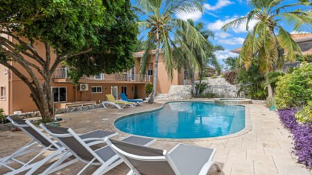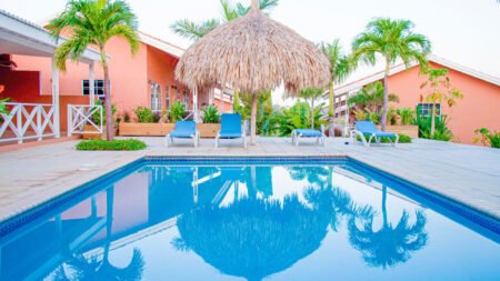 Winter Wanneer je tussen 01-01-2023 en 31-12-2025 in deze accommodatie verblijft, is onderstaande informatie van toepassing. * Ligging * Rustige ligging * Gelegen op een heuvel * Openbaar strand Mambo beach op circa 3 kilometer * Zandstrand * Ligbedden tegen betaling * Parasol tegen betaling * Centrum van Willemstad op circa 6 kilometer * Supermarkt op circa 750 meter * Dichtstbijzijnde restaurant op circa 300 meter * Dichtstbijzijnde bar op circa 300 meter * Bushalte op circa 300 meter * Algemeen & faciliteiten * Relaxte sfeer * 8 gebouwen * Maximaal 2 verdiepingen * 16 kamers * Receptie * Op gezette tijden geopend * Geen liften * Bagageruimte * Wifi in alle openbare ruimtes * Wasruimte tegen betaling * Tuin * Openbare parkeergelegenheid * Zwembaden * 2 buitenzwembaden * Zoetwater * Zonneterras * Ligbedden * Parasol * Badhanddoekenservice * Kinderfaciliteiten * Babybedje op aanvraag via ons contact center tegen betaling * Verzorging * Logies * Goed om te weten * Deze accommodatie is niet geschikt voor mensen die slecht ter been zijn * Deze accommodatie heeft veel hoogteverschillenHotelkamers * Studio Standaard SZ * Oppervlakte circa 45 m² * Eén slaapkamer * Airconditioning * Televisie * Kitchenette * 4-pits kooktoestel * Magnetron * Koffie- en theefaciliteiten * Koelkast * Badkamer met inloopdouche, toilet en föhn (op aanvraag) * Balkon of terras (zitje) * 2-kamerappartement Standaard 2AZ * Oppervlakte circa 65 m² * Woon-/slaapkamer * Eén slaapkamer * Airconditioning * Televisie * Kitchenette * 4-pits kooktoestel * Magnetron * Koffie- en theefaciliteiten * Koelkast * Badkamer met inloopdouche, toilet en föhn (op aanvraag) * Balkon of terras (zitje)