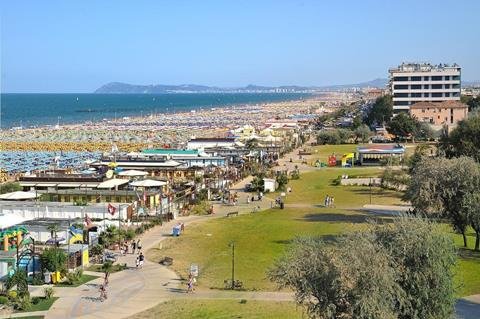 Een van de beste en meest geliefde 3-sterren hotels in Rimini. Met ligging direct aan het strand en aan de boulevard. Er zijn standaard kamers, kamers met zijzeezicht en ruime suites voor families. Op de veranda bij het zwembad kun je ’s avonds het actieve avondleven van Rimini gadeslaan of aan de andere kant van het hotel kun je genieten van de ondergaande zon. Op het strand worden diverse activiteiten aangeboden, zoals volleybal of windsurfen. In de directe omgeving van het hotel zijn diverse amusementsparken, zoals Italia in Miniatura en Aquafan.