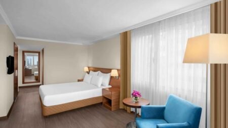 Dedeman Istanbul Hotel is een stijlvol 5-sterrenhotel met een toplocatie in de stad. Op slechts 8 minuten lopen van metrostation Gayrettepe en dicht bij populaire winkelcentra, is dit de perfecte uitvalsbasis voor een stedentrip. Geniet van een panoramisch uitzicht over Istanbul vanaf de rooftopbar, ontspan in het half Olympische binnenzwembad of kom helemaal tot rust in het uitgebreide Spa Center met bubbelbad, massages en een moderne fitnessruimte. In restaurant Turkuaz proef je de lekkerste internationale en Turkse gerechten. Met hippe wijken zoals Ortaköy en Bebek op korte afstand, zit je hier altijd goed!