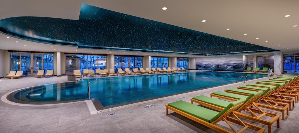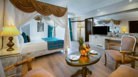 Dit luxe resort voelt als een eigen wereld aan de kust. Je loopt zo naar het strand en in de grote tuinen vind je altijd een rustige plek om te ontspannen. Het brede zwembad vormt het hart van het resort en krijgt richting de middag een levendige sfeer. De kamers zijn elegant ingericht en geven je direct een comfortabel gevoel. Overdag kies je uit sport, wellness of andere activiteiten die verspreid over het terrein plaatsvinden. Kinderen duiken meteen de glijbanen op of sluiten aan bij het animatieteam. In de restaurants proef je verschillende keukens en later op de avond zorgt het entertainment voor een gezellige sfeer. Dit resort brengt luxe, ruimte en gemak samen op één plek.
