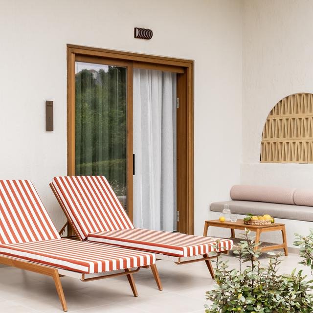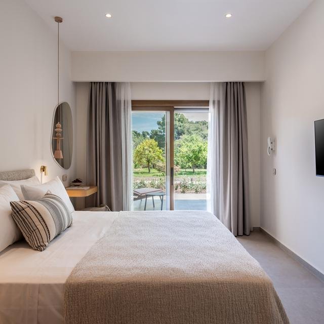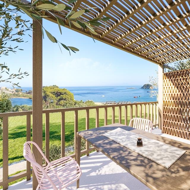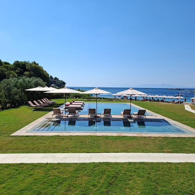 Dome Island Skiathos is een nieuw gebouwd en elegant hotel, ideaal voor wie op zoek is naar ontspanning en een rustige vakantie. Het hotel ligt in een rustige omgeving en biedt een harmonieuze omgeving waar je in alle rust kunt genieten van uitzicht op de Middellandse Zee. Het combineert eigentijds design met veel goede voorzieningen. De ruime en smaakvol ingerichte kamers hebben een balkon met uitzicht op het kristalheldere water of de weelderige groene omgeving.