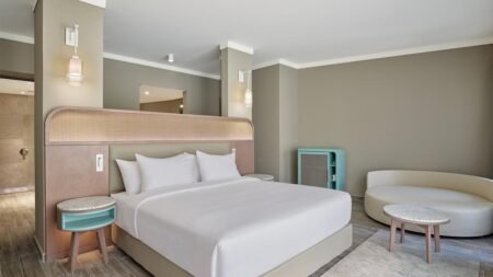 Dit prachtige resort ligt direct aan de helderblauwe Rode Zee. Het gebouw valt meteen op met frisse kleuren, strakke lijnen en palmbomen die zorgen voor tropische sferen. Je geniet hier van meerdere zwembaden, relaxplekken en een privéstrand op loopafstand. Binnen wacht comfort met een fitnessruimte, spa en speeltuin. Voor de innerlijke mens is The Kitchen een feest met internationale en Midden Oosterse gerechten. Koffie drink je bij Dryp Coffee Hub en je avond sluit je af met cocktails bij Social Creatures. Vakantiegevoel gegarandeerd!