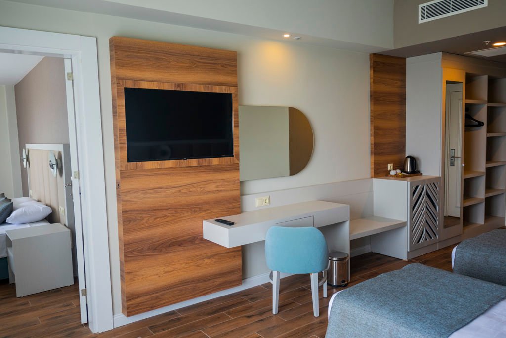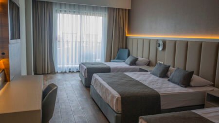 Zomer Wanneer je tussen 27-03-2026 en 21-11-2026 in deze accommodatie verblijft, is onderstaande informatie van toepassing. * Ligging * Openbaar strand op circa 1 kilometer * Zandstrand * Ligbedden * Parasol * Centrum van Side op circa 6 kilometer * Dichtstbijzijnde winkel op circa 100 meter * Dichtstbijzijnde restaurant op circa 100 meter * Dichtstbijzijnde bar op circa 100 meter * Shuttleservice naar het strand * Bushalte op circa 100 meter * Taxistandplaats op circa 20 meter * Algemeen & faciliteiten * 1 gebouw * Maximaal 6 verdiepingen * 372 kamers * Receptie * 24 uur per dag * Lobby * Lift * Bagageruimte * Wifi in alle openbare ruimtes * Meerdere winkels * Wasservice tegen betaling * Doktersservice tegen betaling * Tuin * Openbare parkeergelegenheid * Restaurants & bars * Buffetrestaurant * 3 à-la-carterestaurants (vooraf reserveren) * Italiaans restaurant * Turks restaurant * Visrestaurant * Roomservice tegen betaling * 5 drinkgelegenheden * 2 bars * Beachbar * Lobbybar * Poolbar * Activiteiten & ontspanning * Aerobics * Beachvolleybal * Boccia * Boogschieten * Darts * Duikcentrum tegen betaling * Fitness * Tafeltennis * Watersporten tegen betaling * Spa Center * Binnenzwembad * Gesloten in het zomerseizoen * Sauna * Hamam * Massages tegen betaling * Schoonheidsbehandelingen tegen betaling * Animatie voor volwassenen * 6 keer per week * Shows * 6 keer per week * Livemuziek * Eén keer per week * Zwembaden * 3 buitenzwembaden * Activiteitenbad * Adult pool * Buitenzwembad voor kinderen * 9 glijbanen * Aquapark Lengte: 120, cm * Open tussen ca. woensdag 15 april 2026 en donderdag 15 oktober 2026 afhankelijk van weersomstandigheden * 36 glijbanen * De glijbanen hebben verschillende openingsperiodes * Zonneterras * Ligbedden * Parasol * Badhanddoekenservice * Kinderfaciliteiten * Mini club (4-12 jaar) * 6 keer per week * Minidisco * 6 keer per week * Buitenspeeltuin * Babybedje als preferentie toe te voegen in het boekingsformulier * Verzorging * All Inclusive * Ontbijt in buffetvorm (07.00-10.00 uur) * Laat ontbijt in buffetvorm (10.00-10.30 uur) * Lunch in buffetvorm (12.30-14.00 uur) * Diner in buffetvorm (19.00-21.00 uur) * Dineren in één van de à-la-carterestaurants 1 keer per verblijf * Snacks (12.00-16.00 uur) * Koffie, thee & koekjes (15.00-16.00 uur) * IJs (15.00-16.00 uur) * Middernachtsnack (23.00-23.30 uur) * Selectie lokale (non-)alcoholische drankjes (10.00-00.00 uur) * Tegen betaling: drankjes na 00.00 uur, import drankjes, verse vruchtensappen en roomserviceHotelkamers * 2-persoonskamer Standaard DZ1 * 2-persoonskamer Standaard DZ * Oppervlakte tussen 24 en 26 m² * Airconditioning * Kluisje tegen betaling * Televisie * Telefoon tegen betaling * Eet- en drinkfaciliteiten * Koffie- en theefaciliteiten * Minibar * Badkamer douche, toilet en föhn * Wifi * Balkon of terras (zitje) * Familiekamer Standaard FZ * Oppervlakte tussen 42 en 44 m² * Eén grote kamer met tussendeur * Airconditioning * Kluisje tegen betaling * Televisie * Telefoon tegen betaling * Eet- en drinkfaciliteiten * Koffie- en theefaciliteiten * Minibar * Badkamer douche, toilet en föhn * Wifi * Balkon of terras (zitje) * Familiekamer Duplex FF * Oppervlakte tussen 40 en 42 m² * In duplexstijl * 2 slaapkamers * Eén slaapkamer * Eén slaapkamer * Airconditioning * Kluisje tegen betaling * Televisie * Telefoon tegen betaling * Eet- en drinkfaciliteiten * Koffie- en theefaciliteiten * Minibar * Badkamer douche, toilet en föhn * Wifi * Balkon of terras (zitje)