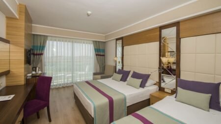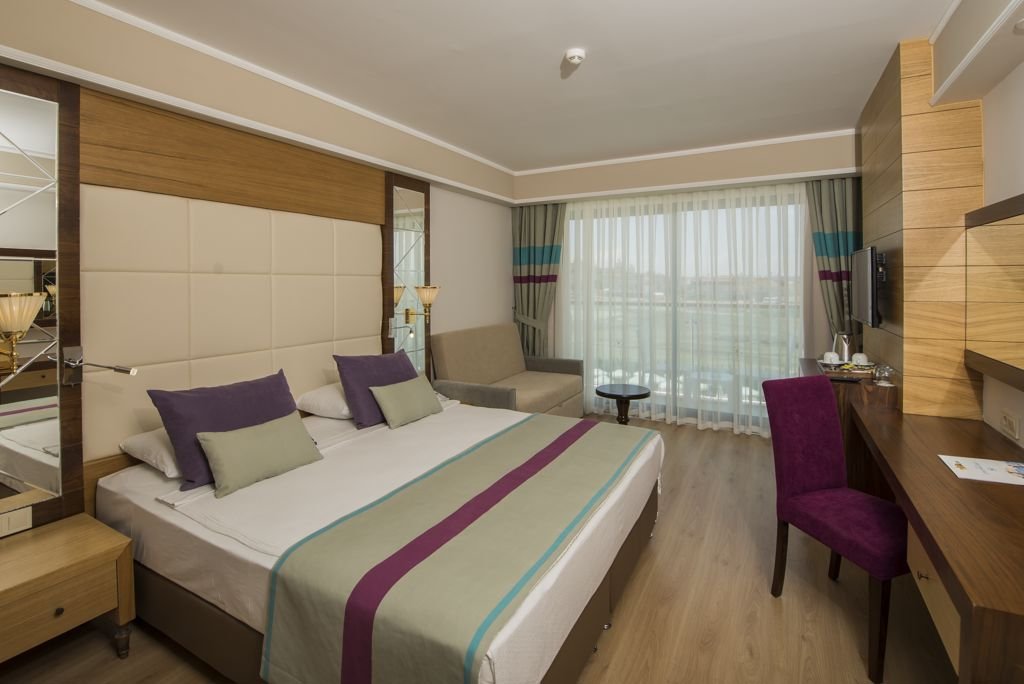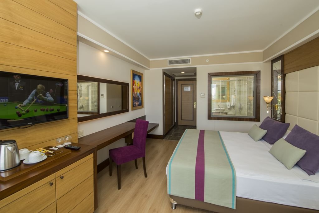 Zomer Wanneer je tussen 04-04-2025 en 21-11-2025 in deze accommodatie verblijft, is onderstaande informatie van toepassing. * Ligging * In Evrenseki * Oude centrum Side op circa 8 kilometer * Privéstrand op circa 600 meter * Weg tussen het strand en de accommodatie * Ligbedden met matrasjes * Parasol * Dichtstbijzijnde winkel op circa 50 meter * Dichtstbijzijnde restaurant op circa 50 meter * Dichtstbijzijnde bar op circa 50 meter * Shuttleservice naar het strand * Algemeen & faciliteiten * 2 gebouwen * Maximaal 7 verdiepingen * 427 kamers * Receptie * 24 uur per dag * Lobby met zitgedeelte * 5 liften * Lift in elk gebouw * Televisieruimte * Wifi bij de receptie * Meerdere winkels * Wasservice tegen betaling * Doktersservice tegen betaling * Tuin * Openbare parkeergelegenheid * Privé parkeergelegenheid * Restaurants & bars * Buffetrestaurant * 3 à-la-carterestaurants (vooraf reserveren) * Roomservice tegen betaling * 6 drinkgelegenheden * 6 bars * Activiteiten & ontspanning * Aerobics * Beachvolleybal * Boccia * Boogschieten * Darts * Duikcentrum tegen betaling * Fitness * Tafeltennis * Tennis * Voetbal * Watersporten tegen betaling * Spa Center * Binnenzwembad * Sauna * Turks stoombad * Massages tegen betaling * Schoonheidsbehandelingen tegen betaling * Animatie * 6 keer per week * Zwembaden * Meerdere buitenzwembaden * Activiteitenbad * Relaxbad * Bij één van deze zwembaden geldt een minimumleeftijd van 18 jaar * Buitenzwembad voor kinderen * Aquapark * Open tussen ca. dinsdag 15 april 2025 en woensdag 15 oktober 2025 afhankelijk van weersomstandigheden * Zonneterras * Ligbedden met matrasjes * Parasol * Badhanddoekenservice * Kinderfaciliteiten * Mini club (4-12 jaar) * 6 keer per week * Minidisco * Buitenspeeltuin * Babybedje * Verzorging * All Inclusive * Ontbijt in buffetvorm (07.00-10.00 uur) * Laat ontbijt in buffetvorm (10.00-10.30 uur) * Lunch in buffetvorm (12.30-14.00 uur) * Diner in buffetvorm (19.00-21.00 uur) * Dineren in één van de à-la-carterestaurants 1 keer per verblijf * Snacks (12.00-16.00 uur) * Koffie, thee & koekjes (15.00-16.00 uur) * IJs (15.00-16.00 uur) * Middernachtsnack (23.00-23.30 uur) * Selectie lokale (non-)alcoholische drankjes (10.00-00.00 uur) * Tegen betaling: import drankjes, speciale wijnen, verse vruchtensappen en roomserviceHotelkamers * 2-persoonskamer Voordeel DE * Locatie kan afwijken ten opzichte van andere kamertypes * Faciliteiten kunnen afwijken ten opzichte van andere kamertypes * Oppervlakte circa 30 m² * Airconditioning * Kluisje tegen betaling * Satelliettelevisie * Telefoon tegen betaling * Eet- en drinkfaciliteiten * Koffie- en theefaciliteiten * Minibar * Badkamer douche, toilet en föhn * Wifi * Balkon (zitje) * 2-persoonskamer Standaard DZ * Oppervlakte circa 30 m² * Airconditioning * Kluisje tegen betaling * Satelliettelevisie * Telefoon tegen betaling * Eet- en drinkfaciliteiten * Koffie- en theefaciliteiten * Minibar * Badkamer douche, toilet en föhn * Wifi * Balkon (zitje) * Familiekamer Standaard FZ1 * Oppervlakte circa 45 m² * 2 slaapkamers * Airconditioning * Kluisje tegen betaling * Satelliettelevisie * Telefoon tegen betaling * Eet- en drinkfaciliteiten * Koffie- en theefaciliteiten * Minibar * Badkamer douche, toilet en föhn * Wifi * Balkon (zitje) * Familiekamer Standaard FZ2 * Oppervlakte circa 45 m² * 2 slaapkamers * Airconditioning * Kluisje tegen betaling * Satelliettelevisie * Telefoon tegen betaling * Eet- en drinkfaciliteiten * Koffie- en theefaciliteiten * Minibar * 2 badkamers * Meerdere badkamers met douche, toilet en föhn * Wifi * Balkon (zitje)