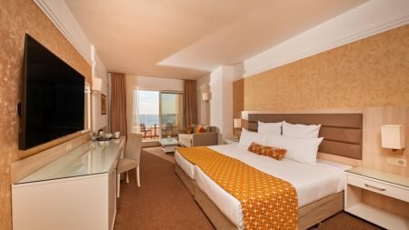 Een absolute toplocatie in Bulgarije. Je krijgt elke avond een culinaire verrassing voorgeschoteld en het personeel staat altijd klaar. Kortom, een luxe vakantie met klasse en kwaliteit tot in de details. Dit hotel heeft alles in huis voor een heerlijke (familie)vakantie. Terwijl de kinderen van het waterpark genieten, boek jij een massage om even echt tijd voor jezelf te hebben. Of zoek een plekje op het rustige strand en neem een verkwikkende duik in de Zwarte Zee.