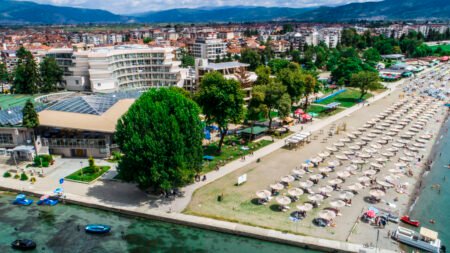 Zomer Wanneer je tussen 12-05-2024 en 21-09-2024 in deze accommodatie verblijft, is onderstaande informatie van toepassing. * Ligging * Aan een meer (Ohrid) * Aan het privéstrand (Kamelija) * Kiezelstrand * Ligbedden * Parasol * Centrum van Struga op circa 200 meter * Centrum van Ohrid op circa 12 kilometer * Dichtstbijzijnde winkel op circa 200 meter * Dichtstbijzijnde restaurant op circa 200 meter * Dichtstbijzijnde bar op circa 200 meter * Museum Nezlobinski op circa 500 meter * Bushalte op circa 100 meter * Taxistandplaats * Algemeen & faciliteiten * 1 gebouw * Maximaal 5 verdiepingen * 200 kamers * Receptie * 24 uur per dag open * Inchecken vanaf 14.00 uur * Uitchecken tot 12.00 uur * Lobby * 3 liften * Bagageruimte * Wifi in alle openbare ruimtes gratis * Wasservice tegen betaling * Medische service tegen betaling * Op aanvraag * Tuin * Privé parkeergelegenheid gratis * Restaurants & bars * 2 buffetrestaurants * 2 à-la-carterestaurants * Themabuffetten * Meerdere drinkgelegenheden * Beachbar * Lobbybar * Pool-/snackbar * Activiteiten & ontspanning * Bowling * Tafeltennis * Spafaciliteiten * Sauna gratis voor all inclusive gasten * Massages tegen betaling * Schoonheidsbehandelingen tegen betaling * Animatie voor kinderen * Zwembaden * Buitenzwembad * Buitenzwembad voor kinderen * Binnenzwembad * Zonneterras * Ligbedden gratis * Parasol gratis * Badhanddoekenservice * Kinderfaciliteiten * Buitenspeeltuin * Babybedje gratis * Verzorging * Logies & Ontbijt * Ontbijt in buffetvorm * Halfpension * Ontbijt in buffetvorm * Diner in buffetvorm * All Inclusive * Ontbijt in buffetvorm (07.30-09.30 uur) * Lunch in buffetvorm (12.30-14.00 uur) * Diner in buffetvorm (19.00-21.00 uur) * Snacks (10.00-12.00 and 14.30-18.30) * Koffie, thee & koekjes (10.00-12.00 and 14.30-18.30) * Niet inbegrepen: * Geïmporteerde drankjes * Goed om te weten * Huisdieren zijn niet toegestaanHotelkamers * 2-persoonskamer Standaard DZ * Oppervlakte circa 22 m² * Airconditioning * Kluisje gratis * Televisie * Telefoon * Eet- en drinkfaciliteiten * Minibar tegen betaling * Badkamer met bad of douche, toilet en föhn * Wifi gratis * Balkon of terras (zitje) * 2-persoonskamer Large DL * Oppervlakte circa 35 m² * Airconditioning * Kluisje * Televisie * Telefoon tegen betaling * Eet- en drinkfaciliteiten * Koffie- en theefaciliteiten * Minibar tegen betaling * Badkamer met bad of douche, toilet, föhn, badjassen en badslippers * Wifi