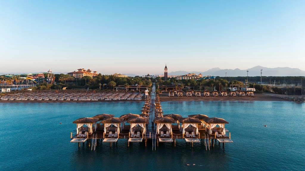 Hier ontspan je in tiki cabana's op het privéstrand of duik je in het gigantische zwembadcomplex met Venetiaanse brug – perfect voor je vakantiefoto. Zoek je spanning? De kamikaze en vrijevalglijbaan zorgen voor kriebels in je buik. Liever rust? De strakke spa tovert je om tot een nieuwe versie van jezelf. Meerdere restaurants verwennen je met Turkse smaken, Italiaanse pasta's of sappige burgers. Terwijl de kinderen zich uitleven in de kinderclub, geniet jij van een cocktail. En 's avonds brengt de animatie jullie samen voor onvergetelijk entertainment.