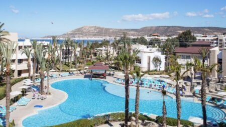 Dunes d'Or Ocean Club in Agadir is een ideale plek voor een vakantie vol zon, plezier en ontspanning. Je verblijft direct aan het strand en geniet van zwembaden en waterglijbanen voor de kinderen en fijne wellnessfaciliteiten voor ultieme rust. Het hotel biedt een centrale ligging waardoor je gemakkelijk de gezellige boulevard en het levendige centrum van Agadir kunt verkennen. Met vier restaurants, sportactiviteiten, entertainment en livemuziek is er altijd iets te beleven. Voor de kinderen zijn er volop faciliteiten zoals een speeltuin en miniclub, terwijl volwassenen ontspannen met een drankje aan de bar of genieten van een massage. Bij Dunes d'Or Ocean Club beleeft het hele gezin een zorgeloze vakantie onder de Marokkaanse zon.