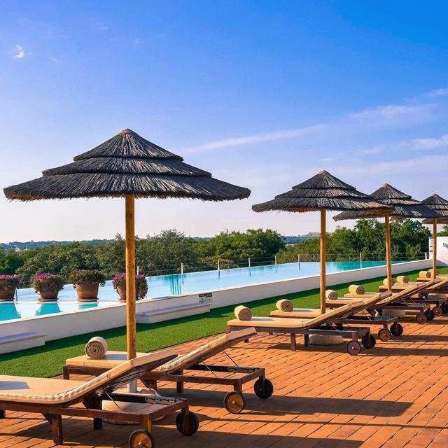 Ecorkhotel Evora is een duurzaam hotel op een unieke ligging in het hart van de regio Alentejo. Dit is de ultieme plek voor een onbezorgde vakantie. Het hotel is helemaal geintegreerd in het prachtige landschap, om het natuurlijke thema door te zetten is bij de inrichting gebruik gemaakt van natuurlijke materialen zoals kurk. Terwijl je relaxt op een ligbed bij de prachtige infinity pool geniet je van de groene omgeving en het gezang van de vogels. Neem een verfrissende duik of sip aan een lekkere cocktail. Heb je zin om de mooie omgeving te verkennen? De bijzondere stad Évora ligt op slechts een paar kilometer afstand, hier vind je bijzondere bezienswaardigheden zoals de Romeinse tempel of de kathedraal Sé. Vergeet ook zeker geen bezoekje te brengen aan de stad Lissabon, deze geweldige stad ligt op ongeveer een uur rijden van het resort.