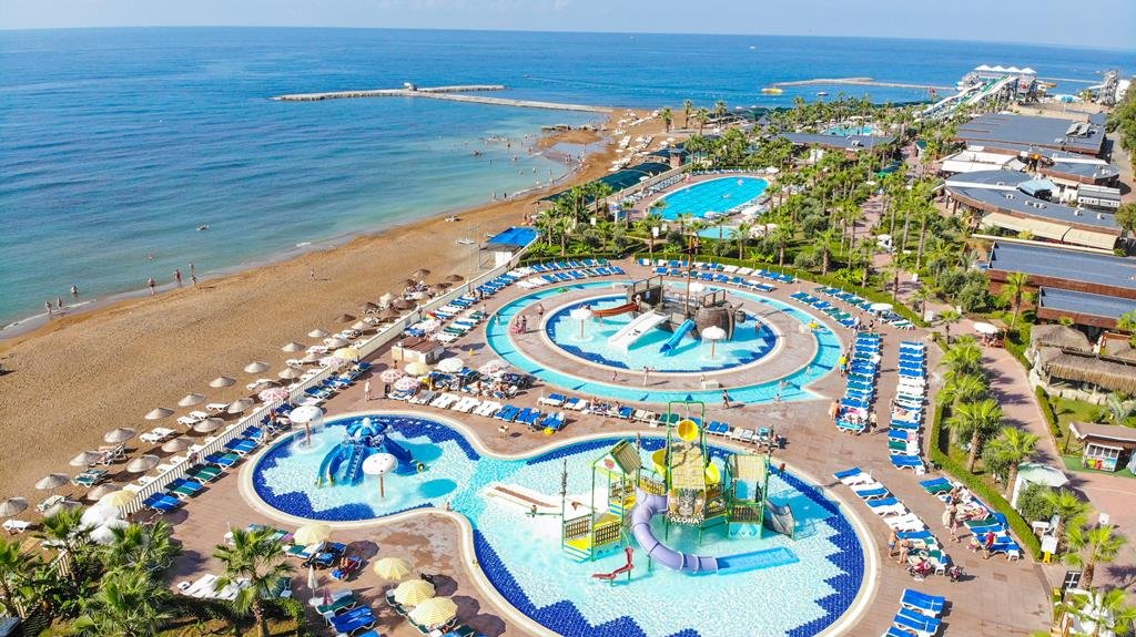 Dit hotel is uitstekend gelegen, direct achter Eftalia Island in Alanya. Dit is één groot paradijs voor waterpretliefhebbers van alle leeftijden. Van babybadjes tot glijbanen voor de echte waaghalzen en alles daartussenin. Helemaal fijn is dat je hier ook gebruik mag maken van de All Inclusive, dus de snacks en drankjes zijn allemaal inclusief. Even bijkomen? Bij het hotel zelf kan je ook heerlijk aan het zwembad liggen. En boek je een swim up kamer? Dan bof je helemaal, vanuit jouw ruime familiesuite, spring je zo het zwembad in. Als dat geen spetterende vakantie wordt aan de Turkse Rivièra!