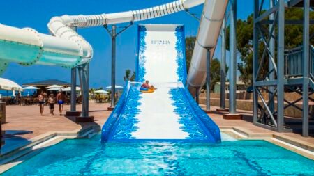 Ben je op zoek naar een hotel waar het hele gezin zich uitstekend vermaakt, met heel veel waterpret en waar je 24/7 gebruikt maakt van de Ultra All Inclusive formule? Dan is Eftalia Ocean de perfecte keuze voor jou! Het hoogtepunt van Eftalia Ocean is toch wel het urenlange spetter- en plonsplezier met de meest gave glijbanen. Want niet alleen op het resort zelf voelen de kids zich als een vis in het water, op ongeveer 150 meter ligt Eftalia Island voor nog meer fun! Je loopt door de tunnel en je bent er zó. Met zo'n 8 zwembaden inclusief glijbanen en kinderzwembaden voor de allerkleinsten is dit een waar zwemparadijs voor jong én oud. Want je roetsjt toch zelf ook wel een keer van die hoge glijbaan af voor een gezonde dosis adrenaline? Liever op je gemak op het naastgelegen privéstrand een goed boek lezen? Dat kan natuurlijk ook! En wil je écht helemaal ontspannen, breng dan een bezoek aan de sauna en het Turks bad. Uiteraard kun je ook deelnemen aan een van de vele animatieactiviteiten zoals aerobics of een potje beach volleybal. Dagelijks serveert het restaurant smaakvolle gerechten en haal je bij de bar telkens weer een ander heerlijk verfrissend drankje. 's Avonds zijn er leuke avondshows voor de hele familie. Na al dat avontuur slaap je uit in de ruime, moderne kamers tot wel 8 personen. En wil je nu 's morgens gelijk vanaf je balkon het zwembad in plonzen? Boek dan eens een swim-up kamer. Alles wat je je maar kunt wensen op het gebied van plezier, comfort, luxe en service vind je in Eftalia Ocean. Wanneer zien we jou voor een onvergetelijke vakantie in Eftalia Ocean?