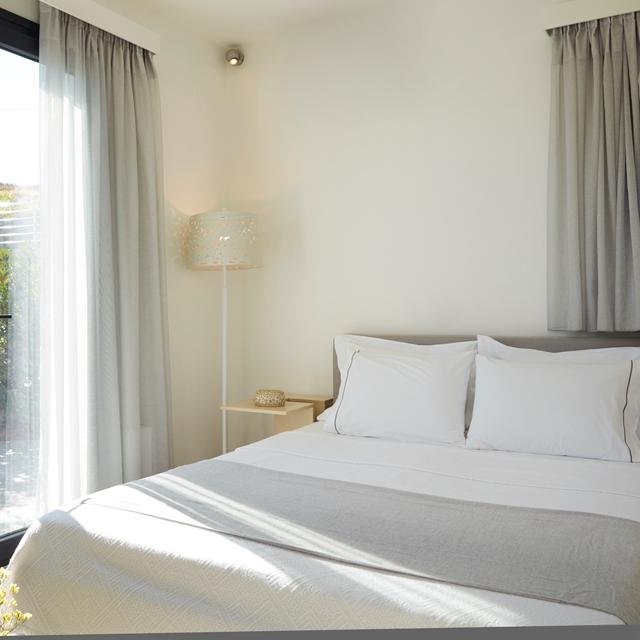 Iedere villa beschikt over een woonkamer, twee slaapkamers en maar liefst twee badkamers. Overnachten doe je op een queensize COCO-Mat matras om het gevoel van luxe nog wat te versterken. De inrichting is modern en er is gebruik gemaakt van lichte kleuren wat zorgt voor een fijne sfeer. Wat ook heel mooi is, de villa’s zijn allemaal zo gebouwd dat er vanuit iedere kamer zeezicht is. In de compleet ingerichte keuken maak je zo een zomerse maaltijd klaar. Dit wordt genieten.
