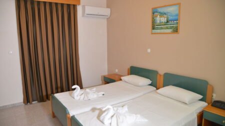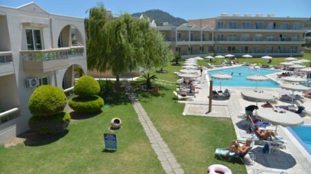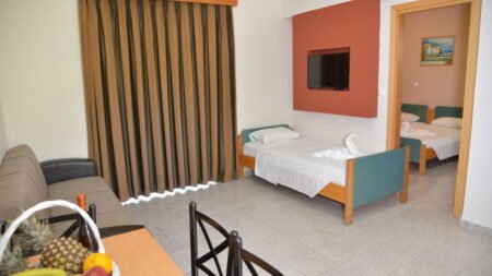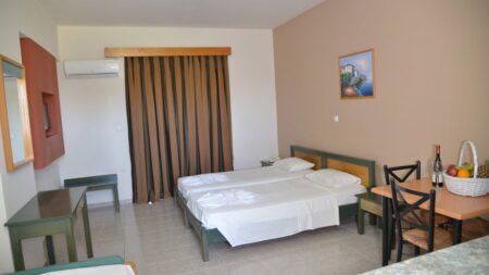 Winter Wanneer je tussen 15-04-2025 en 31-10-2027 in deze accommodatie verblijft, is onderstaande informatie van toepassing. * Ligging * Openbaar strand * Weg tussen het strand en de accommodatie * Trianda op circa 2 kilometer * Kremasti op circa 1,4 kilometer * Bushalte op circa 150 meter * Luchthaven op circa 5 kilometer * Algemeen & faciliteiten * Gedeeltelijk gerenoveerd in 2023 * Kindvriendelijk complex * 3 gebouwen * Maximaal 3 verdiepingen * 91 kamers * Receptie * 24 uur per dag * Lobby * 2 liften * Niet in elk gebouw een lift * Bagageruimte * Wifi in alle openbare ruimtes * Tuin * Openbare parkeergelegenheid * Restaurants & bars * Restaurant * Restaurant met verschillende specialiteiten * Drinkgelegenheid * Bar * Activiteiten & ontspanning * Animatie voor volwassenen * 3 keer per week * Zwembaden * Buitenzwembad * Buitenzwembad voor kinderen * Zonneterras * Ligbedden * Kinderfaciliteiten * Buitenspeeltuin * Verzorging * Logies * Logies & Ontbijt * Ontbijt in buffetvorm * Halfpension * Ontbijt in buffetvorm * Diner à la carte * Goed om te weten * Deze accommodatie is niet geschikt voor mensen die slecht ter been zijnHotelkamers * Studio Standaard SZ * Oppervlakte circa 27 m² * Airconditioning tegen betaling * Kluisje tegen betaling * Televisie * Telefoon tegen betaling * Kitchenette * 2-pits kooktoestel * Koelkast * Badkamer met douche in bad, toilet en föhn * Wifi * Balkon (zitje) * Huisdieren zijn niet toegestaan * 2-kamerappartement Standaard 2AZ * Oppervlakte van circa 29 m² * Woon-/slaapkamer * Slaapbank voor twee personen * Eén slaapkamer * Airconditioning tegen betaling * Kluisje tegen betaling * Televisie * Telefoon tegen betaling * Kitchenette * 2-pits kooktoestel * Koelkast * Badkamer met douche in bad, toilet en föhn * Wifi * Balkon of terras (zitje) * Huisdieren zijn niet toegestaan