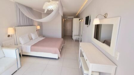 Zomer Wanneer je tussen 27-04-2025 en 23-10-2025 in deze accommodatie verblijft, is onderstaande informatie van toepassing. * Ligging * Gelegen op een heuvel * Privéstrand * Ligbedden met matrasjes * Parasol * Centrum van Parga op circa 2,5 kilometer * Dichtstbijzijnde winkel op circa 400 meter * Dichtstbijzijnde restaurant op circa 450 meter * Dichtstbijzijnde bar op circa 850 meter * Nekromanteion of Acheron op circa 18 kilometer * Aphrodite's cave op circa 4,8 kilometer * Parga op circa 2,5 kilometer * Shuttleservice naar het centrum (Parga) * 2 keer per dag * Algemeen & faciliteiten * 4 gebouwen * Maximaal 2 verdiepingen * 38 kamers * Receptie * Open van 08.00 tot 00.00 uur * Geen liften * Bagageruimte * Wifi in alle openbare ruimtes * Winkel (minimarkt) * Doktersservice tegen betaling * op aanvraag * Tuin * Privé parkeergelegenheid * Restaurants & bars * À-la-carterestaurant * Drinkgelegenheid * Beachbar * Activiteiten & ontspanning * Beachvolleybal * Spafaciliteiten * Massages tegen betaling * Schoonheidsbehandelingen tegen betaling * Livemuziek * Eén keer per week * Zwembaden * 2 buitenzwembaden * Zonneterras * Ligbedden * Parasol * Kinderfaciliteiten * Babybedje op aanvraag via ons contact center * Verzorging * Logies & Ontbijt * Ontbijt in buffetvorm * Halfpension * Ontbijt in buffetvorm (08.30-10.30 uur) * Diner met keuze uit een vast menu * Goed om te weten * Deze accommodatie is niet geschikt voor mensen die slecht ter been zijn * Deze accommodatie heeft enkele hoogteverschillenHotelkamers * 2-persoonskamer Deluxe DD * Oppervlakte tussen 25 en 30 m² * Airconditioning * Kluisje * Televisie * Eet- en drinkfaciliteiten * Waterkoker * Mini koelkast * Badkamer met douche, toilet en föhn * Wifi * Balkon of terras (zitje) * Familiekamer Superior FS * Oppervlakte tussen 40 en 45 m² * Airconditioning * Kluisje * Televisie * Eet- en drinkfaciliteiten * Waterkoker * Mini koelkast * Badkamer met douche, toilet en föhn * Wifi * Balkon of terras (zitje) * Familiekamer Suite FU * Oppervlakte tussen 40 en 45 m² * Airconditioning * Kluisje * Televisie * Eet- en drinkfaciliteiten * Waterkoker * Mini koelkast * Badkamer met douche, toilet en föhn * Wifi * Balkon of terras (zitje) * Junior suite Executive JQ * Oppervlakte tussen 18 en 20 m² * Airconditioning * Kluisje * Televisie * Eet- en drinkfaciliteiten * Waterkoker * Mini koelkast * Badkamer met douche, toilet en föhn * Wifi * Balkon of terras (zitje) * Suite (Paradise) U1 * Oppervlakte tussen 18 en 20 m² * Airconditioning * Kluisje * Televisie * Eet- en drinkfaciliteiten * Waterkoker * Mini koelkast * Badkamer met douche, toilet en föhn * Wifi * Balkon of terras (zitje, hydromassagebad)