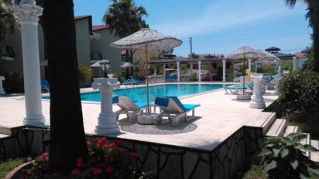 Direct naar: * Ligging () * Faciliteiten () * Restaurants & Bars () * Hotelkamers () * Sport & Ontspanning () * Kinderfaciliteiten () * Zwembaden () * Verzorging () Ligging: Erkin Aparthotel * Op ca. 1 kilometer van het strand * Op ca. 2 kilometer van Fethiye * Bushalte op ca. 100 meter * Een aantal winkels en restaurants op ca. 50 meter * Bars op ca. 500 meter Faciliteiten * 1 gebouw met 2 verdiepingen * Er zijn geen liften aanwezig * 8 appartementen * 24-uursreceptie * Tuin * Gratis wifi in de openbare ruimtes * Wasservice* *Tegen betaling Restaurants & bars * 1 à-la-carterestaurant * 1 pool-/snackbar Hotelkamers * 2-kamerappartement (1-4 personen) * Ca. 55 m² * Bestaat uit een woon-/slaapkamer met slaapbank en een aparte slaapkamer * Airconditioning* * Satelliettelevisie * Kluisje * Wifi * Kitchenette * Koelkast * Koffie-/theezetfaciliteiten * Kookplaat * Douche * Toilet * Föhn * Balkon met zitje *Tegen betaling Sport & Ontspanning * Fitness * Gratis leenfietsen Kinderfaciliteiten * 1 kinderbad * Speeltuintje Zwembad * 1 buitenzwembad * Zonneterras met gratis ligbedden, matrasjes en parasols Verzorging Zomer : Erkin Aparthotel * Verblijf o.b.v. Logies * Tegen een meerprijs verblijf je o.b.v. Logies & Ontbijt: ontbijt in à la cartevorm * Tegen betaling: roomservice, consumpties in de Garden Bar, dineren in het à-la-carterestaurant