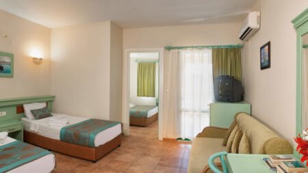 Geniet van een heerlijke vakantie in Hotel Esra Family Suites, op loopafstand van het prachtige zandstrand langs de Egeïsche kust. Dit gezinsvriendelijke hotel in Altinkum biedt alles wat je nodig hebt voor een ontspannen en gezellige vakantie. Neem een duik in een van de drie zwembaden, roetsj van de glijbanen of ontspan met een drankje aan de poolbar. De mooie tuinen rondom het hotel zorgen voor een rustige sfeer, terwijl de nabijheid van Altinkum je de mogelijkheid biedt om de omgeving te verkennen. Of je nu komt voor een relaxte stranddag, watersporten of een uitstapje naar een van de charmante dorpjes in de buurt, bij Esra Family Suites zit je helemaal goed. Voeg daar de Turkse gastvrijheid en de diverse activiteiten aan toe, en je hebt de perfecte plek voor een onvergetelijke vakantie!