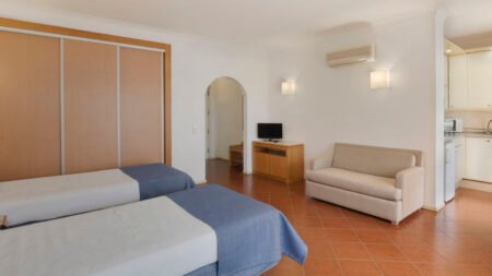 Zomer Wanneer je tussen 01-04-2025 en 31-10-2025 in deze accommodatie verblijft, is onderstaande informatie van toepassing. * Ligging * Openbaar strand Praia do Alemao op circa 650 meter * Zandstrand * Centrum van Praia da Rocha op circa 2,5 kilometer * Dichtstbijzijnde winkel op circa 650 meter * Dichtstbijzijnde restaurant * Beschikbaar bij 650 * Dichtstbijzijnde bar op circa 650 meter * Portimao op circa 2 kilometer * Bushalte op circa 500 meter * Treinstation op circa 3 kilometer * Algemeen & faciliteiten * 1 gebouw * Maximaal 5 verdiepingen * 136 kamers * Receptie * 24 uur per dag * Lobby * 3 liften * Bagageruimte * Wifi in alle openbare ruimtes * Tuin * Privé parkeergelegenheid * Restaurants & bars * Buffetrestaurant * Sportbar * Activiteiten & ontspanning * Biljart tegen betaling * Tafeltennis * Tennis tegen betaling * Voetbal * Gameroom toegang tegen betaling * Animatie voor volwassenen * 7 keer per week in het hoogseizoen * Shows * 7 keer per week in het hoogseizoen * Livemuziek * 7 keer per week in het hoogseizoen * Zwembaden * Buitenzwembad * Zoetwater * Buitenzwembad voor kinderen * Zoetwater * Zonneterras * Ligbedden met matrasjes * Parasol * Badhanddoekenservice * Kinderfaciliteiten * Mini club (4-12 jaar) * 5 keer per week in het hoogseizoen * Buitenspeeltuin * Babybedje op aanvraag via ons contact center * Verzorging * Logies * Logies & Ontbijt * Ontbijt in buffetvorm * Halfpension * Ontbijt in buffetvorm * Diner in buffetvorm * Goed om te weten * Huisdieren zijn niet toegestaanHotelkamers * Studio S * Oppervlakte van circa 60 m² * Airconditioning * Kluisje tegen betaling * Televisie * Telefoon tegen betaling * Kitchenette * 4-pits kooktoestel * Magnetron * Broodrooster * Koffie- en theefaciliteiten * Koelkast * Badkamer met douche in bad, toilet en föhn * Wifi * Balkon of terras (zitje) * 2-kamerappartement 2A * Oppervlakte van circa 65 m² * Woon-/slaapkamer met meerdere slaapplaatsen * Slaapbank voor twee personen * Eén slaapkamer * Airconditioning * Kluisje tegen betaling * Televisie * Telefoon tegen betaling * Kitchenette * 4-pits kooktoestel * Magnetron * Broodrooster * Koffie- en theefaciliteiten * Koelkast * Badkamer met douche in bad, toilet en föhn * Wifi * Balkon of terras (zitje) * 3-kamerappartement 3A * Oppervlakte van circa 90 m² * Woon-/slaapkamer met meerdere slaapplaatsen * Slaapbank voor twee personen * 2 slaapkamers * Airconditioning * Kluisje tegen betaling * Televisie * Telefoon tegen betaling * Eet- en drinkfaciliteiten * 4-pits kooktoestel * Magnetron * Broodrooster * Koffie- en theefaciliteiten * Koelkast * Badkamer met douche in bad, toilet en föhn * Wifi * Balkon of terras (zitje)