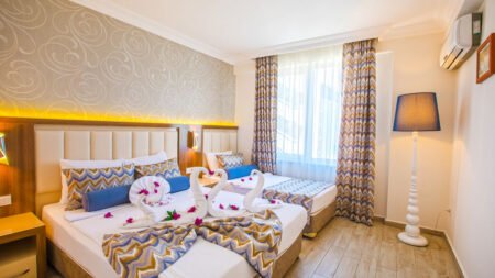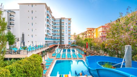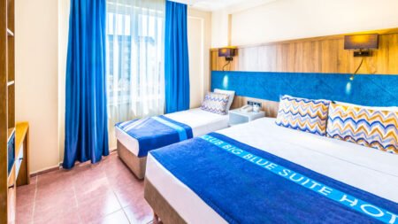 Club Big Blue Suite Hotel ligt in de rustige wijk Oba en aan de rand van het centrum van Alanya. Het privéstrand vind je op loopafstand net als vele winkels, restaurants en bars. Het centrum van Oba bestaat voornamelijk uit laagbouw met een gezellig centrum met mooi geplaveide winkelstraten vol leuke winkeltjes en eetgelegenheden. Het familiehotel Club Big Blue Suite Hotel beschikt over twee zwembaden, waaronder een zwembad met glijbanen. In het buffetrestaurant en het à-la-carterestaurant kun je genieten van heerlijke maaltijden. Sport en ontspanning mogen tijdens je vakantie natuurlijk ook niet ontbreken. Zo kun je bijvoorbeeld een potje tafeltennissen of beachvolleyballen en in de sauna of tijdens een massage kun je heerlijk ontspannen. De kids zullen zich hier zeker ook vermaken. Zo is er een kinderbad, een miniclub en een speeltuin. Kortom, dit familiecomplex is ideaal voor jong en oud! Tijdens je verblijf kun je ervoor kiezen om het excursiepakket met drie excursies te boeken. Met dit pakket ga je op jeeptour door de hellingen van de Taurusbergen en maak je kennis met het authentieke nomadenleven. Daarnaast maak je een boottocht over de rivier de Manavgat en kun je volledig tot rust komen in de hamam.