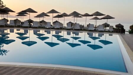 Faustina Hotel, gelegen aan de glinsterende kustlijn van Turkije, biedt een ideaal toevluchtsoord aan het privéstrand, op slechts 22 kilometer van het levendige Kusadasi. Dit charmante hotel nodigt je uit voor een ontspannen verblijf, omgeven door de natuurlijke pracht van de Egeïsche Zee. Met twee restaurants en twee bars biedt Faustina Hotel een gevarieerde culinaire ervaring, waar je kunt genieten van smaakvolle gerechten en verfrissende drankjes. Het buitenzwembad vormt het centrum van verfrissing, terwijl het kinderzwembad ervoor zorgt dat ook de jongste gasten zich vermaken. De comfortabele kamers van het hotel beloven een rustgevende nachtrust na een dag van ontdekking en ontspanning. Op basis van het All-Inclusive concept, biedt Faustina Hotel een zorgeloos verblijf, waardoor je je helemaal kunt concentreren op jouw welverdiende vakantie!. Of je nu de voorkeur geeft aan een ontspannen dag op het strand, een verfrissende duik in het zwembad, of het bruisende Kusadasi wilt verkennen, Faustina Hotel biedt een aangename uitvalsbasis voor een onvergetelijke vakantie aan de Turkse kust.
