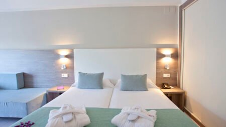 Zomer Wanneer je tussen 04-04-2025 en 31-10-2025 in deze accommodatie verblijft, is onderstaande informatie van toepassing. * Ligging * Openbaar strand Palmanova beach op circa 150 meter * Zandstrand * Ligbedden tegen betaling * Parasol tegen betaling * Dichtstbijzijnde winkel op circa 150 meter * Dichtstbijzijnde restaurant op circa 150 meter * Dichtstbijzijnde bar op circa 150 meter * Golfbaan op circa 4 kilometer * Palmanova op circa 150 meter * Bushalte op circa 25 meter * Algemeen & faciliteiten * 1 gebouw * Maximaal 5 verdiepingen * 126 kamers * Receptie * 24 uur per dag * Inchecken vanaf 14.00 uur * Uitchecken tot 12.00 uur * Lobby * Lift * Bagageruimte * Doucheruimte bij aankomst en vertrek * Wifi in alle openbare ruimtes gratis * Wasservice tegen betaling * Doktersservice tegen betaling * Tuin * Privé parkeergelegenheid gratis * Op basis van de beschikbaarheid ter plaatse * Openbare parkeergelegenheid gratis * Op basis van de beschikbaarheid ter plaatse * Restaurants & bars * Buffetrestaurant * Themabuffetten * Roomservice tegen betaling * Drinkgelegenheid * Pool-/snackbar * Activiteiten & ontspanning * Aerobics * Biljart * Boccia * Darts * Tafeltennis * Tennis * Yoga * Shows * 5 keer per week * Livemuziek * 5 keer per week * Zwembaden * Buitenzwembad * Zoetwater * Buitenzwembad voor kinderen * Zoetwater * Zonneterras * Ligbedden met matrasjes gratis * Parasol gratis * Kinderfaciliteiten * Mini club (4-12 jaar) * 5 keer per week * Teenage club (13-16 jaar) * 5 keer per week tussen ca. juli en augustus * Minidisco * Buitenspeeltuin * Babybedje op aanvraag via ons contact center gratis * Verzorging * All Inclusive * Ontbijt in buffetvorm (08.00-10.30 uur) * Lunch in buffetvorm (13.00-15.00 uur) * Diner in buffetvorm (19.00-21.30 uur) * Snacks (11.00-13.00 en 15.00-18.00) * Koffie, thee & koekjes * IJs * Selectie lokale (non-)alcoholische drankjes (11.00-23.00 uur) * Niet inbegrepen: * Drankjes na 23.00 uur * Geïmporteerde drankjes * Goed om te weten * Huisdieren zijn niet toegestaanHotelkamers * 2-persoonskamer Standaard DZ * Oppervlakte tussen 20 en 22 m² * Straatzicht * Airconditioning gratis * Kluisje tegen betaling * Satelliettelevisie * Telefoon tegen betaling * Eet- en drinkfaciliteiten * Waterkoker gratis * Minibar tegen betaling * Badkamer met douche, toilet, föhn en badjassen * Wifi gratis * Balkon of terras (zitje) * 2-persoonskamer Standaard Zwembadzicht DZP * Oppervlakte circa 22 m² * Zwembadzicht * Airconditioning gratis * Kluisje tegen betaling * Satelliettelevisie * Telefoon tegen betaling * Eet- en drinkfaciliteiten * Waterkoker gratis * Minibar tegen betaling * Badkamer met douche, toilet, föhn en badjassen * Wifi gratis * Balkon of terras (zitje) * Junior suite Standaard JZ * Oppervlakte circa 28 m² * Straatzicht * Airconditioning gratis * Kluisje tegen betaling * Satelliettelevisie * Telefoon tegen betaling * Eet- en drinkfaciliteiten * Nespresso koffiezetapparaat gratis * Waterkoker gratis * Minibar tegen betaling * Badkamer met douche, toilet, föhn, badjassen en badslippers * Wifi gratis * Balkon of terras (zitje)
