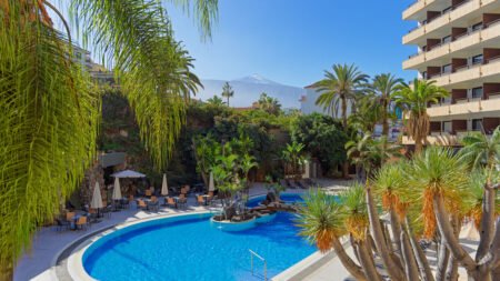 Winter Wanneer je tussen 01-11-2025 en 06-04-2026 in deze accommodatie verblijft, is onderstaande informatie van toepassing. * Ligging * Gelegen op een heuvel * Openbaar strand Playa Martianez op circa 900 meter * Rotsstrand * Openbaar strand Playa Jardin op circa 2,3 kilometer * Zandstrand * Dichtstbijzijnde winkel op circa 300 meter * Dichtstbijzijnde restaurant op circa 400 meter * Dichtstbijzijnde bar op circa 400 meter * Lago Martianez op circa 800 meter * Botanic Garden op circa 750 meter * Teide op circa 33 kilometer * Loro Park op circa 3,7 kilometer * Puerto de la Cruz op circa 500 meter * La Orotava op circa 6,6 kilometer * Shuttleservice naar het winkelcentrum * Bushalte op circa 70 meter * Algemeen & faciliteiten * 1 gebouw * Maximaal 7 verdiepingen * 301 kamers * Receptie * 24 uur per dag * Lobby * 3 liften * Bagageruimte * Wifi in alle openbare ruimtes * Wasservice tegen betaling * Doktersservice tegen betaling * op aanvraag * Tuin * Privé parkeergelegenheid tegen betaling tegen betaling * Restaurants & bars * Buffetrestaurant * 3 drinkgelegenheden * Bar tegen betaling * Lounge bar * Poolbar * Activiteiten & ontspanning * Aerobics * Biljart tegen betaling * Boccia * Boogschieten * Darts tegen betaling * Tafeltennis * Yoga * Animatie voor volwassenen * 7 keer per week * Shows * 7 keer per week * Livemuziek * 4 keer per week * Zwembaden * 2 buitenzwembaden * Eén van deze zwembaden is verwarmd tussen ca. zondag 30 november 2025 en donderdag 30 april 2026 * Buitenzwembad voor kinderen * Zonneterras * Ligbedden * Parasol * Badhanddoekenservice gratis met borg * Kinderfaciliteiten * Minidisco (4-12 jaar) * Babybedje op aanvraag via ons contact center * Verzorging * Halfpension Plus * Ontbijt in buffetvorm * Diner in buffetvorm * (Kleine) selectie drankjes bij het diner * All Inclusive * Ontbijt in buffetvorm (07.30-10.30 uur) * Lunch in buffetvorm (13.00-15.00 uur) * Diner in buffetvorm (18.30-21.30 uur) * Snacks (11.00-12.30 uur en 15.30-17.30 uur) * Selectie lokale (non-)alcoholische drankjes (10.00-23.00 uur) * Tegen betaling: alle consumpties in één van de bars * Goed om te weten * Duurzaamheidslabel(s): GSTC LabelHotelkamers * 2-persoonskamer Superior DS * Oppervlakte van circa 27 m² * Airconditioning * Kluisje tegen betaling * Televisie gratis * Telefoon tegen betaling * Eet- en drinkfaciliteiten * Koffie- en theefaciliteiten tegen betaling * Minibar tegen betaling * Badkamer douche in bad, toilet en föhn * Wifi * Balkon of terras (zitje) * 2-persoonskamer Superior Zeezicht DSM * Oppervlakte van circa 27 m² * Zeezicht * Airconditioning * Kluisje tegen betaling * Televisie * Telefoon tegen betaling * Eet- en drinkfaciliteiten * Koffie- en theefaciliteiten tegen betaling * Minibar tegen betaling * Badkamer douche in bad, toilet en föhn * Wifi * Balkon of terras (zitje) * 2-persoonskamer Premium (Magnus) De Magnus-kamers bieden exclusieve voordelen: toegang tot een adults only verdieping, de rooftop met gratis drankjes, een gevulde minibar, een fles cava, badjassen en slippers, en koffie- en theefaciliteiten. Gasten met All-Inclusive genieten van premium drankjes en gasten met Halfpension krijgen 20% korting in de Magnus-bar. DR * Oppervlakte tussen 27 en 30 m² * Airconditioning * Kluisje tegen betaling * Televisie * Telefoon tegen betaling * Eet- en drinkfaciliteiten * Koffie- en theefaciliteiten * Minibar * Badkamer douche in bad, toiletartikelen, toilet en föhn * Wifi * Balkon of terras (zitje) * Exclusieve toegang tot Exclusive rooftop * 2-persoonskamer Premium Zeezicht (Magnus) De Magnus-kamers bieden exclusieve voordelen: toegang tot een adults only verdieping, de rooftop met gratis drankjes, een gevulde minibar, een fles cava, badjassen en slippers, en koffie- en theefaciliteiten. Gasten met All-Inclusive genieten van premium drankjes en gasten met Halfpension krijgen 20% korting in de Magnus-bar. DRM * Oppervlakte tussen 27 en 30 m² * Zeezicht * Airconditioning * Kluisje tegen betaling * Televisie * Telefoon tegen betaling * Eet- en drinkfaciliteiten * Koffie- en theefaciliteiten * Minibar * Badkamer douche in bad, toilet en föhn * Wifi * Balkon of terras (zitje) * Exclusieve toegang tot exclusive rooftop * Junior suite Standaard JZ * Oppervlakte van circa 30 m² * Airconditioning * Kluisje tegen betaling * Televisie * Telefoon tegen betaling * Eet- en drinkfaciliteiten * Koffie- en theefaciliteiten tegen betaling * Minibar tegen betaling * Badkamer douche in bad, toilet en föhn * Wifi * Balkon of terras (zitje) * Suite Standaard UZ * Oppervlakte van circa 34 m² * Woon-/slaapkamer * Slaapbank voor twee personen * Eén slaapkamer * Airconditioning * Kluisje tegen betaling * Televisie gratis * Telefoon tegen betaling * Eet- en drinkfaciliteiten * Koffie- en theefaciliteiten tegen betaling * Minibar tegen betaling * Badkamer douche in bad, toilet en föhn * Wifi * Balkon of terras (zitje)