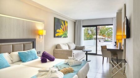 Zomer Wanneer je tussen 24-04-2025 en 31-10-2025 in deze accommodatie verblijft, is onderstaande informatie van toepassing. * Ligging * Gelegen aan het openbare strand (Playa D'en Bossa) * Zandstrand * Centrum van Ibiza-stad op circa 5 kilometer * Dichtstbijzijnde winkel op circa 500 meter * Dichtstbijzijnde restaurant op circa 500 meter * Dichtstbijzijnde bar op circa 500 meter * Bushalte op circa 100 meter * Algemeen & faciliteiten * 6 gebouwen * Maximaal 3 verdiepingen * 530 kamers * Receptie * 24 uur per dag * Lobby * 6 liften * Lift in elk gebouw * Bagageruimte * Wifi in alle openbare ruimtes * Wasservice tegen betaling * Doktersservice tegen betaling * Tuin * Privé parkeergelegenheid tegen betaling * Openbare parkeergelegenheid * Restaurants & bars * Buffetrestaurant * Snackbar * 3 drinkgelegenheden * Lobbybar * Lounge bar tegen betaling * Poolbar * Activiteiten & ontspanning * Aerobics * Aquagym * Darts * Fitness * Tafeltennis * Yoga * Spafaciliteiten * Massages tegen betaling * Schoonheidsbehandelingen tegen betaling * Shows * 4 keer per week * Zwembaden * Buitenzwembad * Zoetwater * Buitenzwembad voor kinderen * Zoetwater * Zonneterras * Ligbedden gratis * Parasol gratis * Badhanddoekenservice gratis met borg * Kinderfaciliteiten * Mini club (4-10 jaar) * 7 keer per week * Verzorging * All Inclusive * Ontbijt in buffetvorm (07.30-10.30 uur) * Lunch in buffetvorm (13.00-15.00 uur) * Diner in buffetvorm (19.00-21.30 uur) * Snacks (10.30-18.00 uur) * IJs (10.30-18.00 uur) * Selectie lokale (non-)alcoholische drankjes (10.00-23.00 uur) * Niet inbegrepen: * CocktailsHotelkamers * 2-persoonskamer Standaard DZ * Oppervlakte circa 25 m² * Straatzicht * Airconditioning * Kluisje * Satelliettelevisie * Telefoon tegen betaling * Badkamer met douche in bad, toilet en föhn * Wifi * Balkon of terras (zitje) * 2-persoonskamer Standaard Zwembadzicht DZP * Oppervlakte circa 25 m² * Zwembadzicht * Airconditioning * Kluisje * Satelliettelevisie * Telefoon tegen betaling * Badkamer met douche in bad, toilet en föhn * Wifi * Balkon of terras (zitje) * 2-persoonskamer Standaard Zeezicht DZM * Oppervlakte circa 25 m² * Zeezicht * Airconditioning * Kluisje * Satelliettelevisie * Telefoon tegen betaling * Badkamer met douche in bad, toilet en föhn * Wifi * Balkon of terras (zitje) * 2-persoonskamer Superior DS * Oppervlakte circa 25 m² * Straatzicht * Zeezicht * Zwembadzicht * Airconditioning * Kluisje * Satelliettelevisie * Telefoon tegen betaling * Eet- en drinkfaciliteiten * Koffie- en theefaciliteiten * Minibar * Badkamer met bad en douche, toilet, föhn en badjassen * Wifi * Balkon (zitje, bubbelbad)
