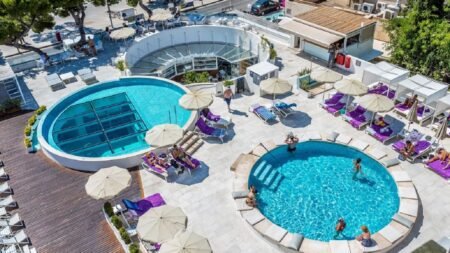 Zomer Wanneer je tussen 01-05-2025 en 31-10-2025 in deze accommodatie verblijft, is onderstaande informatie van toepassing. * Ligging * Openbaar strand Palma Nova Beach op circa 10 meter * Zandstrand * Aan een boulevard * Openbaar strand Magaluf Beach op circa 1 kilometer * Zandstrand * Dichtstbijzijnde winkel op circa 100 meter * Dichtstbijzijnde restaurant op circa 100 meter * Dichtstbijzijnde bar op circa 50 meter * Golf fantasia op circa 250 meter * Western park op circa 1,5 kilometer * Pirates Show op circa 1,5 kilometer * Katmandu house op circa 1,5 kilometer * Palma de Mallorca op circa 12 kilometer * Magaluf op circa 1 kilometer * Bushalte op circa 200 meter * Taxistandplaats op circa 100 meter * Algemeen & faciliteiten * Adults Only (minimumleeftijd 16 jaar) * 2 gebouwen * Maximaal 4 verdiepingen * 93 kamers * Receptie * 24 uur per dag * Inchecken vanaf 15.00 uur * Uitchecken tot 12.00 uur * Lobby * 2 liften * Bagageruimte * Wifi in alle openbare ruimtes * Wasservice tegen betaling * Doktersservice tegen betaling * Privé parkeergelegenheid * Openbare parkeergelegenheid * Restaurants & bars * Buffetrestaurant * Drinkgelegenheid * Bar * Activiteiten & ontspanning * Spa Center * Sauna * Bubbelbad binnen * Massages tegen betaling * Fitnessruimte * Zwembaden * 2 buitenzwembaden * Zonneterras * Ligbedden * Parasol * Badhanddoekenservice tegen betaling * Verzorging * Halfpension * Ontbijt in buffetvorm * Diner in buffetvorm * Goed om te weten * Huisdieren zijn niet toegestaanHotelkamers * 2-persoonskamer Standaard DZ * Oppervlakte circa 19 m² * Airconditioning * Kluisje * Satelliettelevisie * Telefoon tegen betaling * Eet- en drinkfaciliteiten * Koffie- en theefaciliteiten * Minibar tegen betaling * Badkamer met inloopdouche, toilet en föhn * Wifi * Balkon (zitje) * 2-persoonskamer Standaard Zeezicht DZM * Oppervlakte circa 19 m² * Zeezicht * Airconditioning * Kluisje * Satelliettelevisie * Telefoon tegen betaling * Eet- en drinkfaciliteiten * Koffie- en theefaciliteiten * Minibar tegen betaling * Badkamer met inloopdouche, toilet en föhn * Wifi * Balkon (zitje) * 2-persoonskamer Swimup DW * Oppervlakte circa 30 m² * Zwembadzicht * Airconditioning * Kluisje * Satelliettelevisie * Telefoon tegen betaling * Eet- en drinkfaciliteiten * Koffie- en theefaciliteiten * Minibar tegen betaling * Badkamer met inloopdouche, toilet en föhn * Wifi * Terras (zitje) * Directe toegang tot het gedeelde zwembad
