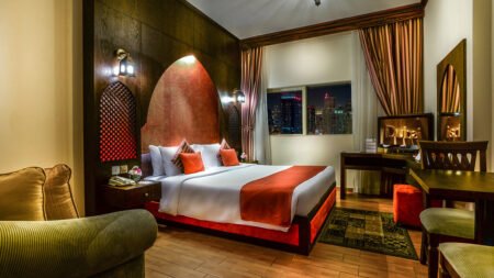 In Barha Heights vind je het First Central Hotel Suite, met uitstekende studio's of suites, een uitstekende keuze als je Dubai eens goed wilt ontdekken. Niet zover van het metrostation ben je in een mum van tijd op je volgende ontdekking in Dubai: op een kilometer van The Palm, en op minder dan 5 kilometer vind je de Burj Al Arab, een golfbaan of de Mall of the Emirates! Shop till you drop om daarna de skilatten onder te binden en misschien nog een skilesje te nemen. En wie weet zie je nog een pinguin rondlopen, hoe gaaf is dat? Als je genoeg indrukken hebt opgedaan en de grootsheid en luxe van Dubai heeft je volledig verrast, dan kun je weer relaxen in het hotel; neem een verkoelende duik in het zwembad en schuif aan in het restaurant. Of laat je schouders eens goed onder handen nemen en ga voor die ontspannende massage, ook heerlijk! Waar wacht je nog op?