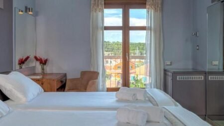 Ontsnap naar een idyllisch paradijs in het hart van Kefalonia! Het Fiscardo Bay Hotel is een oase van rust, gelegen in het charmante dorpje Fiscardo. Waan je in een droom terwijl je uitkijkt over de azuurblauwe baai, omringd door schilderachtige vissersboten en traditionele huizen. Geniet van het adembenemende uitzicht vanaf je eigen balkon en laat de stress van alledag volledig van je afglijden.